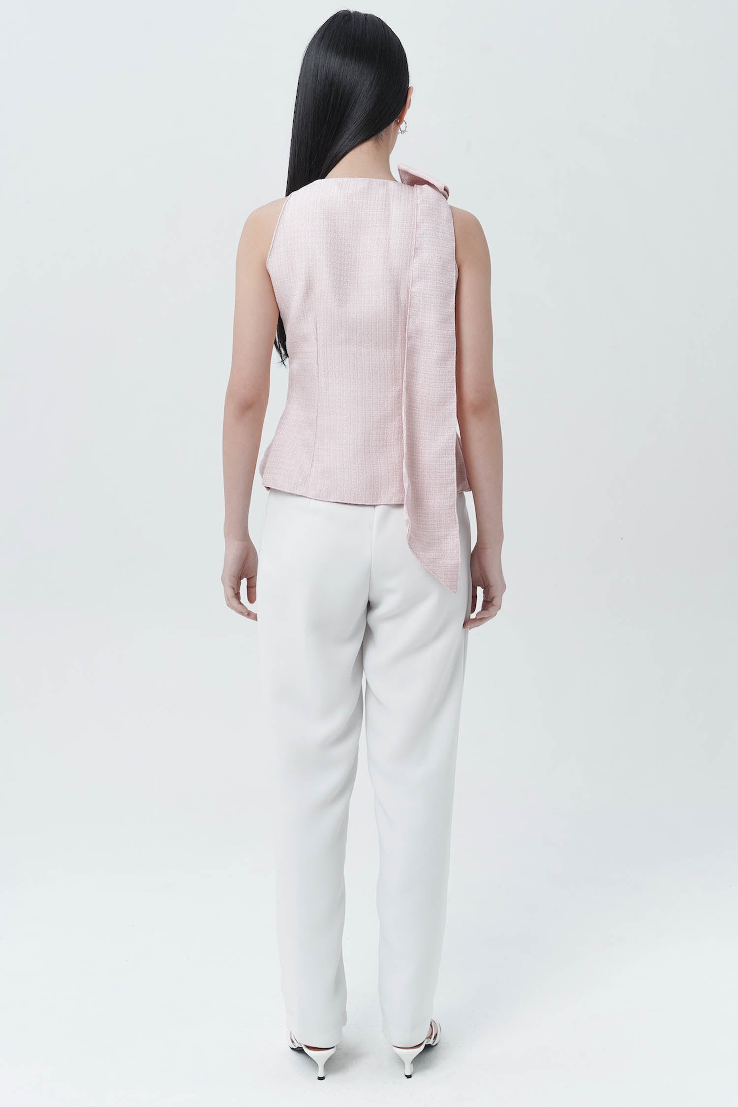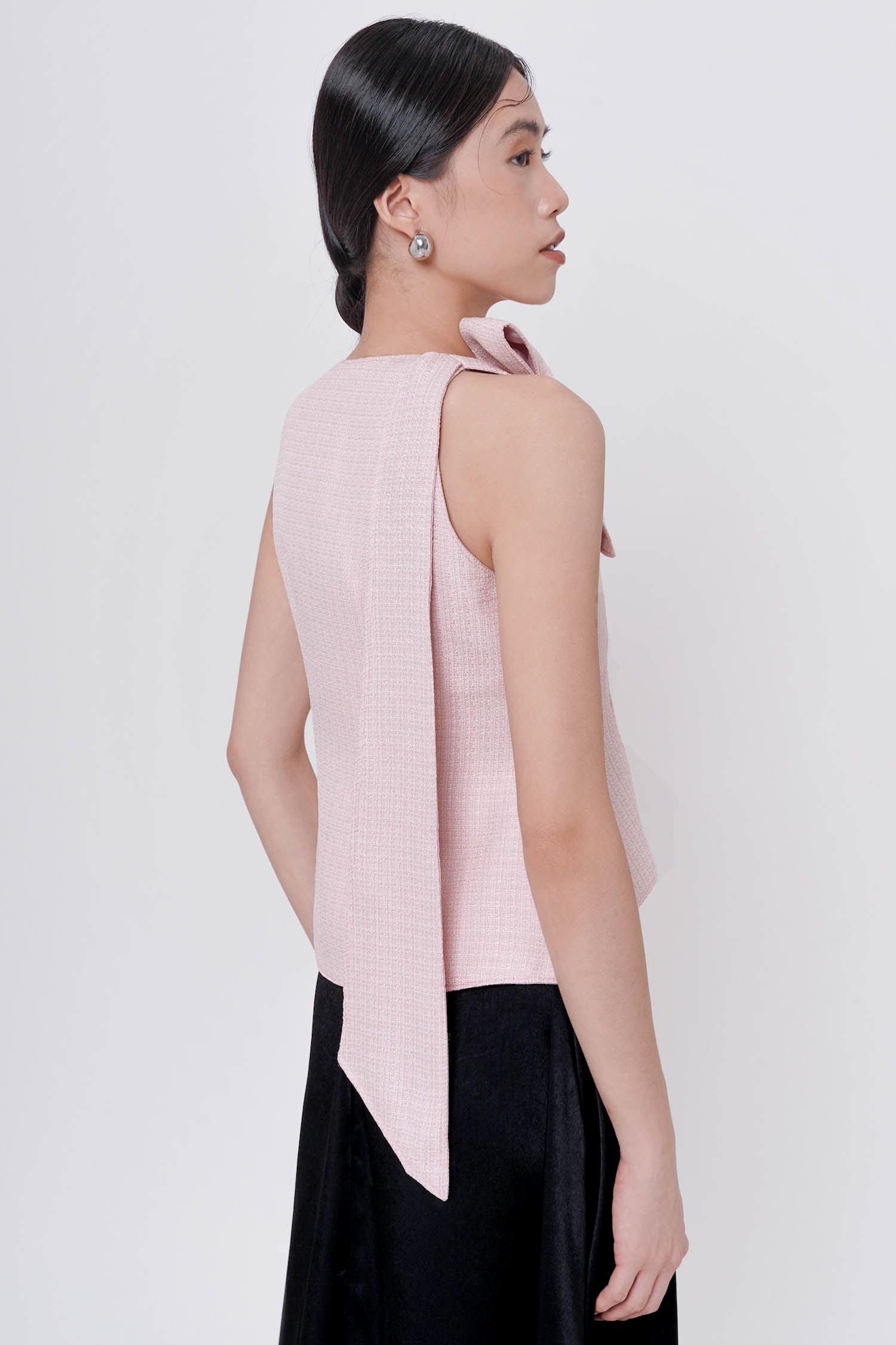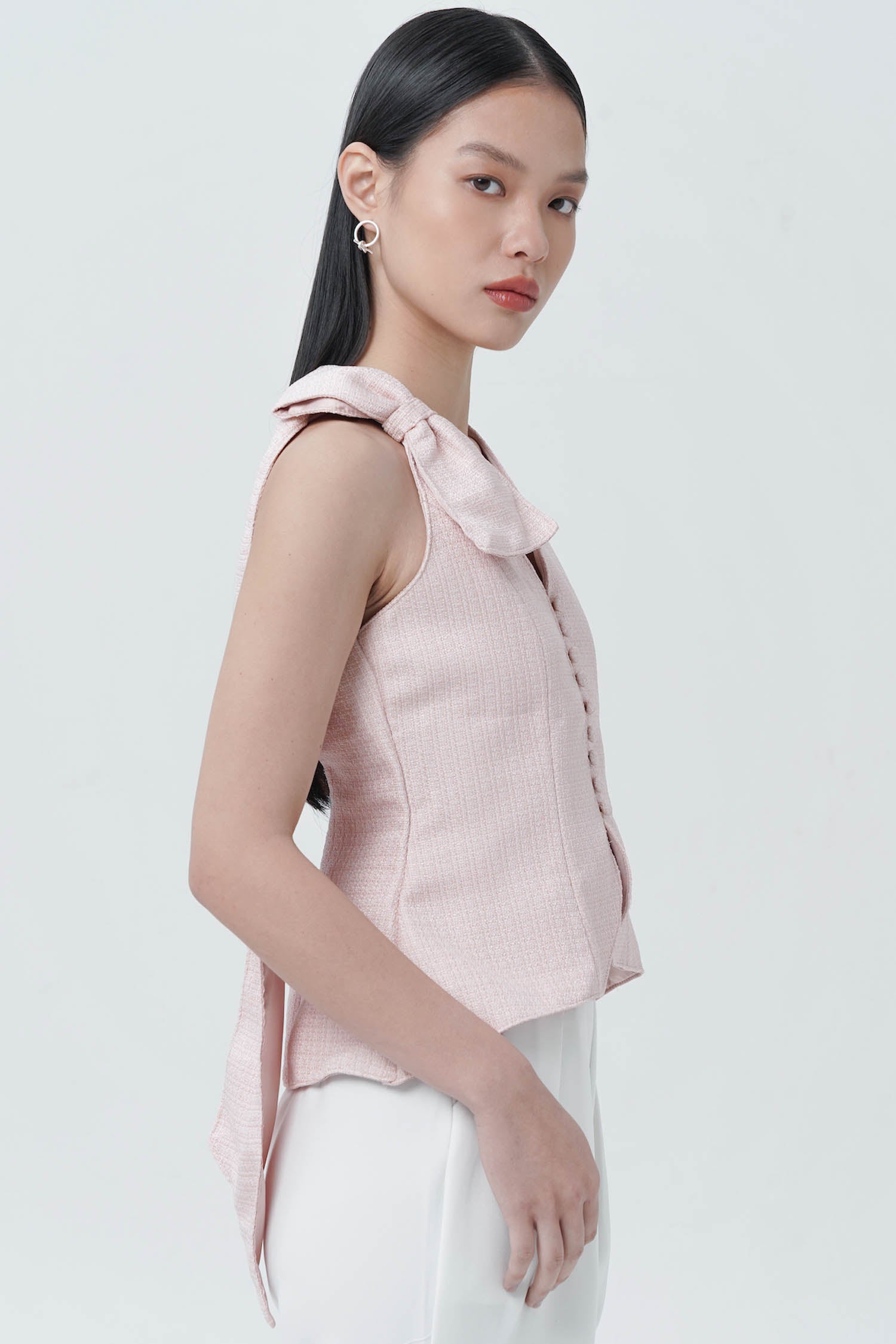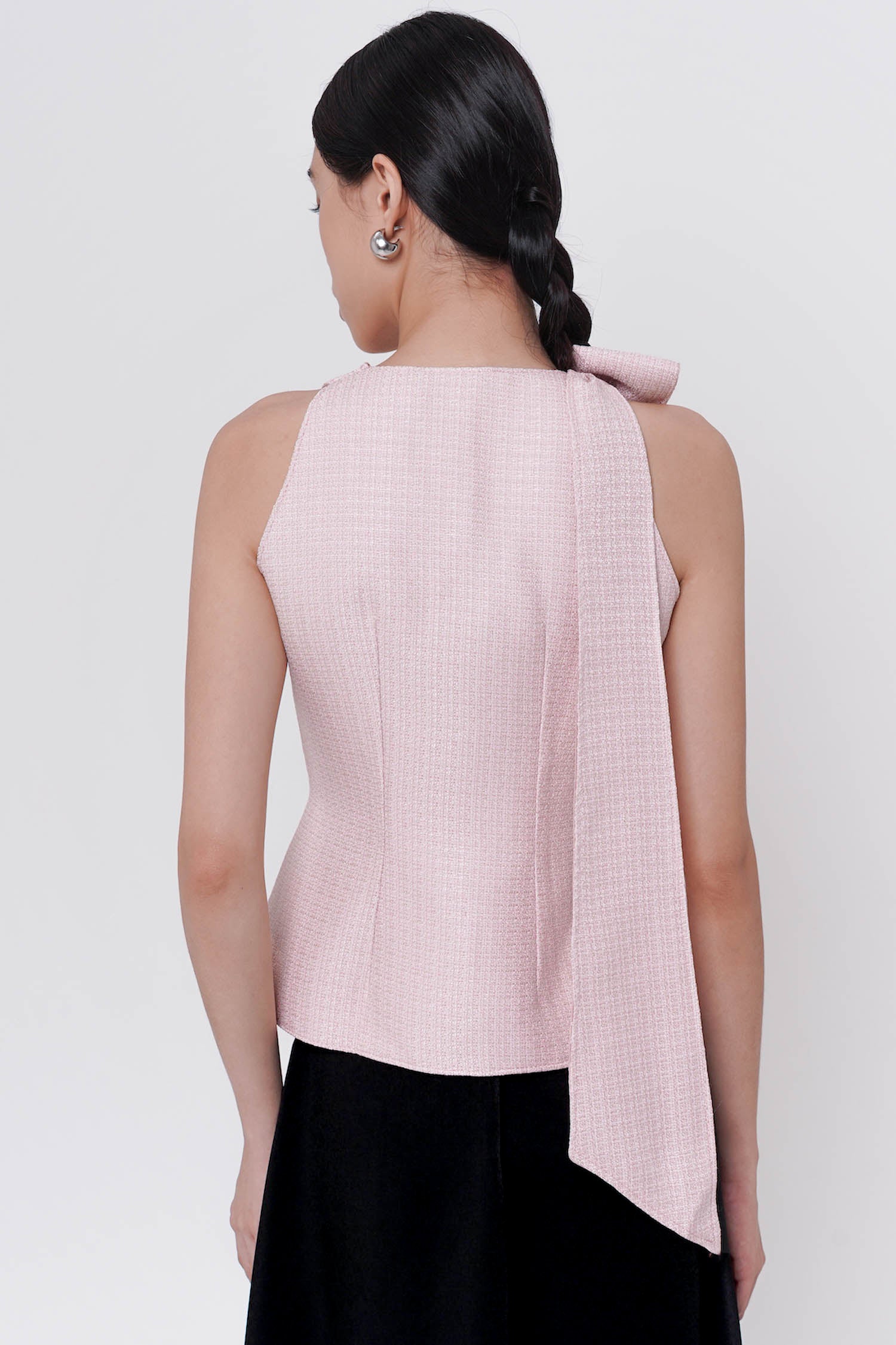 Elevate your wardrobe with the Maje Top in Pink, our bestselling piece that effortlessly combines style and sophistication. This stunning top features a delightful big bow, adding a touch of whimsy to your look, while the elegant slayer at the back of the shoulder provides a unique twist that sets it apart.