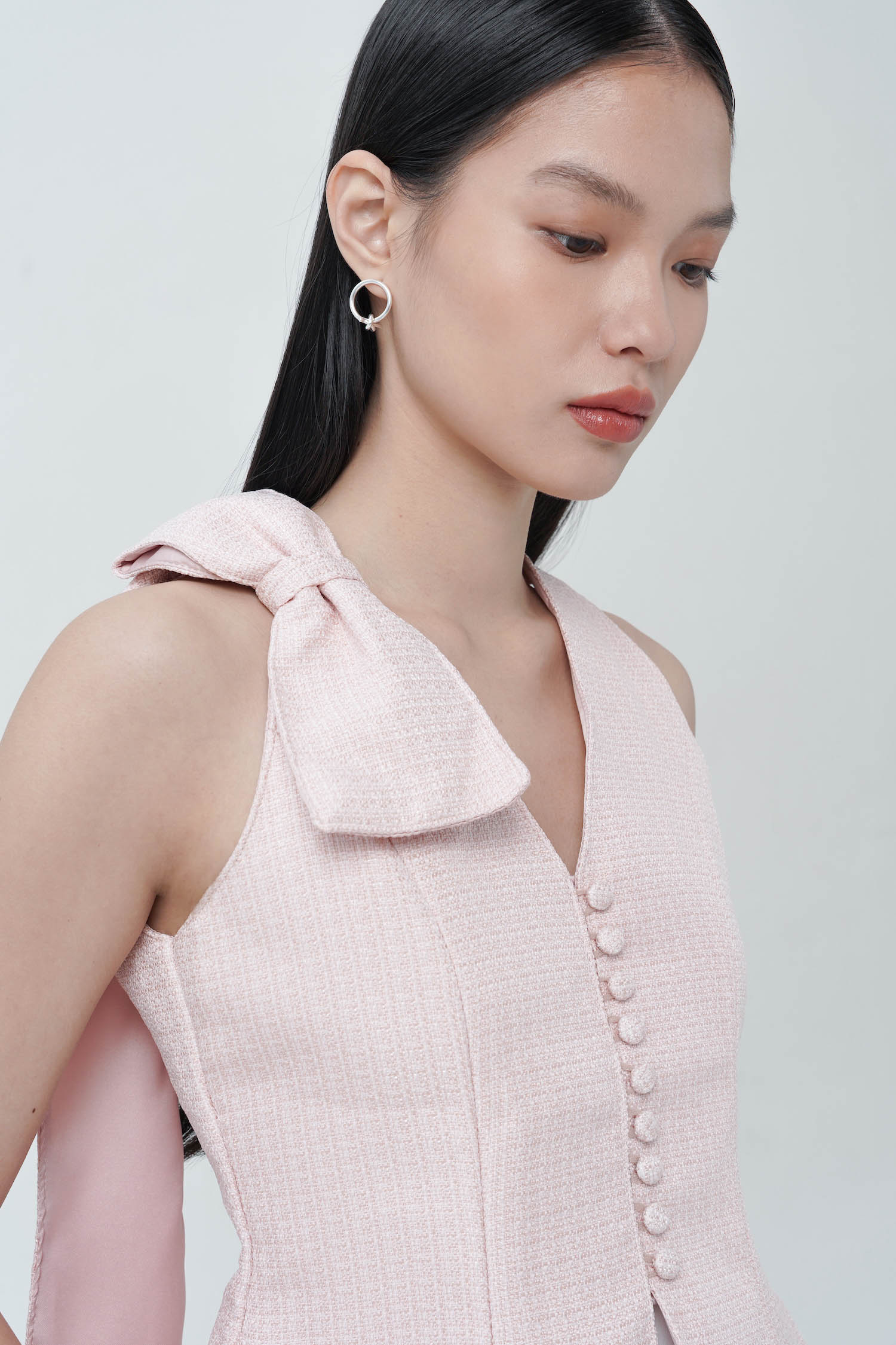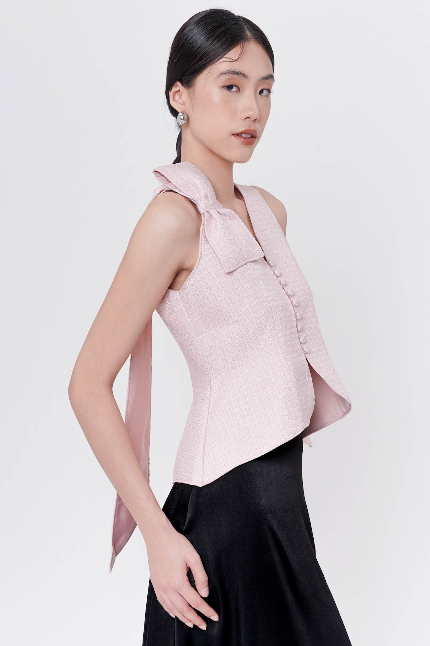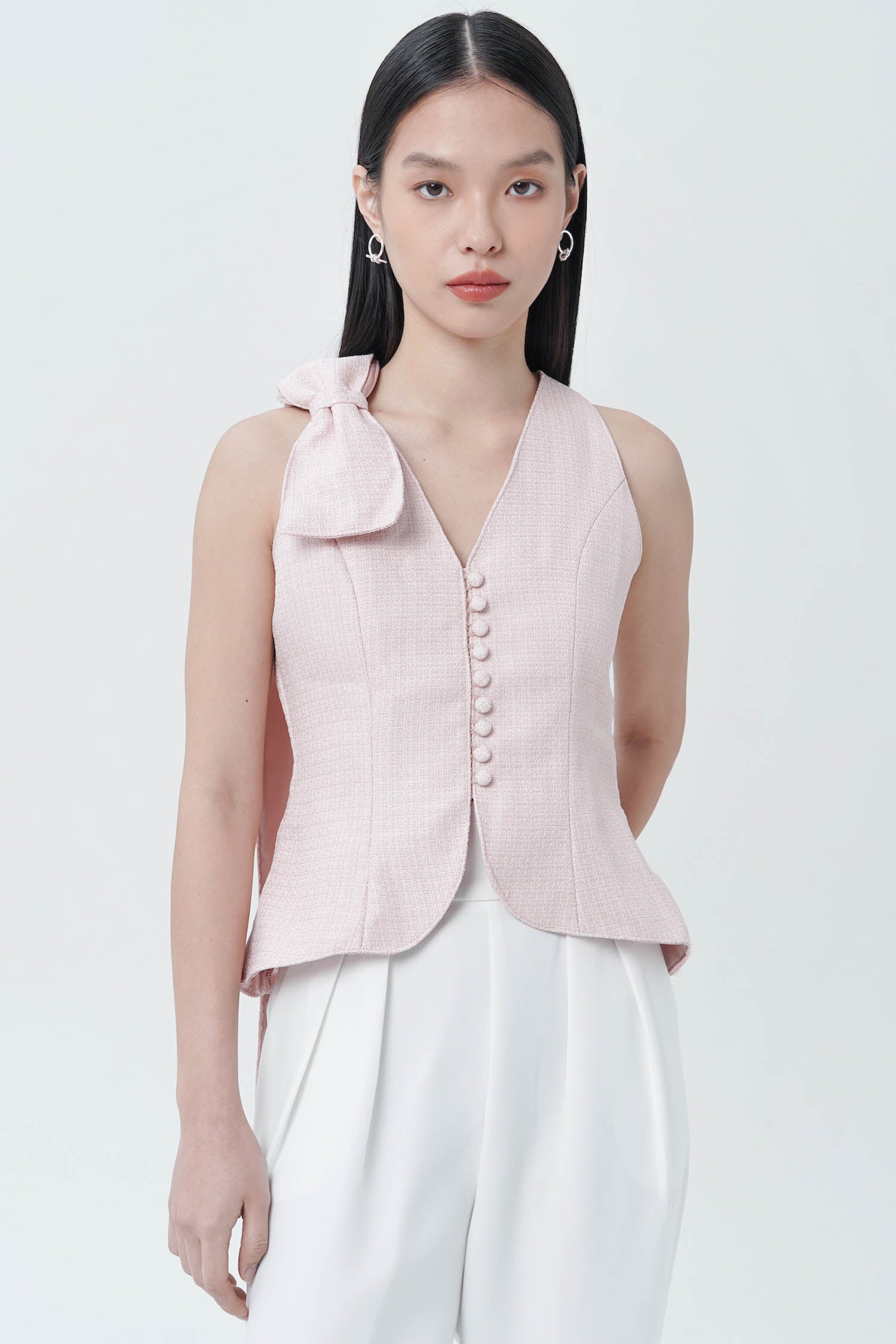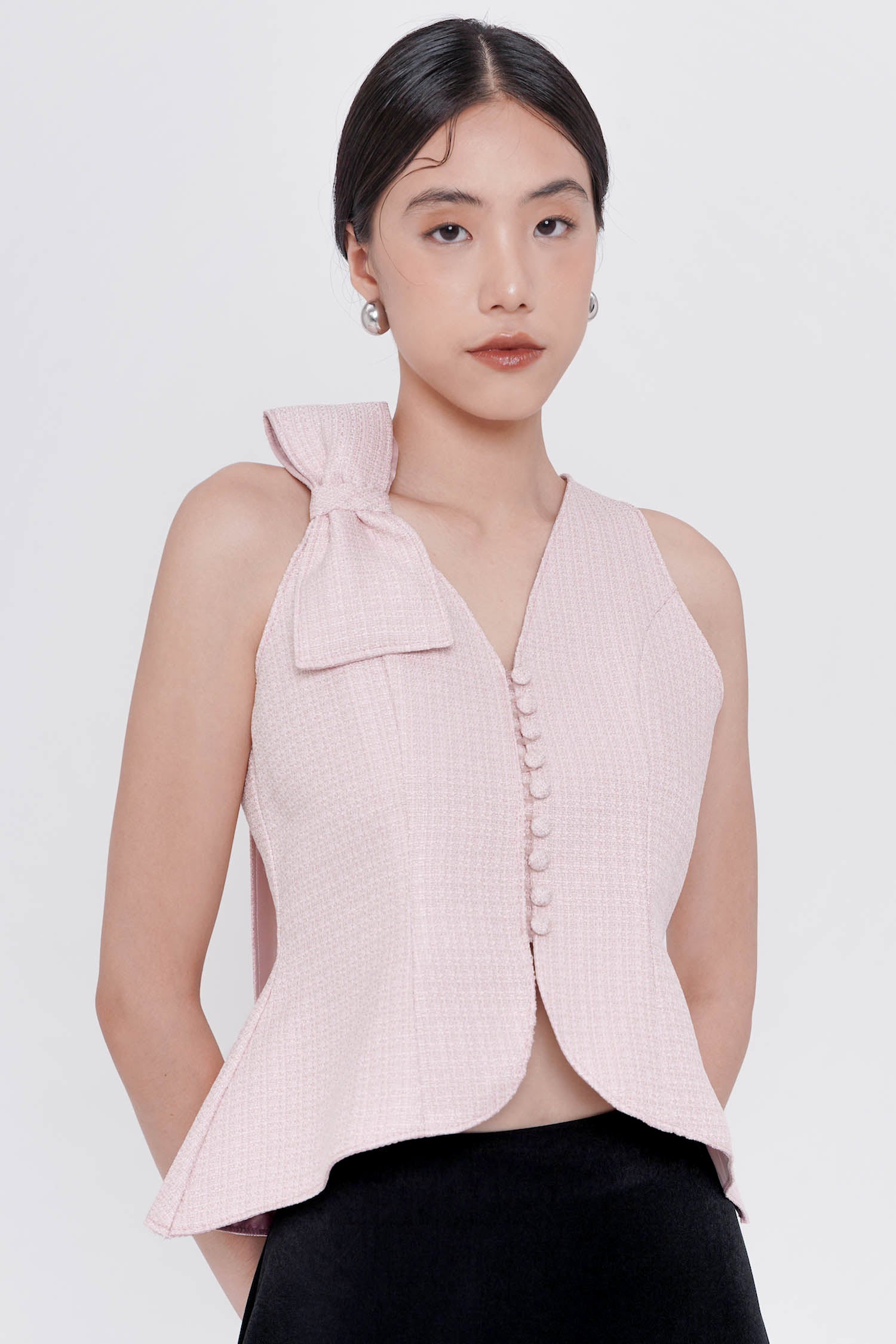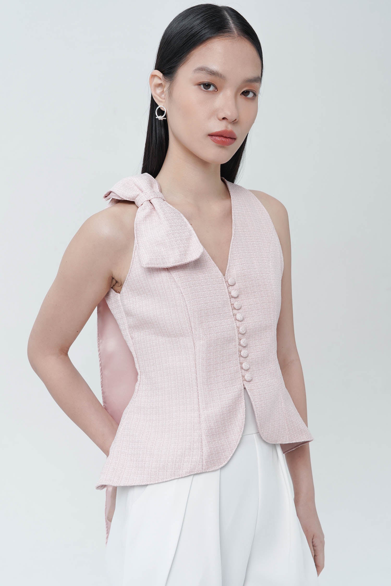 Elevate your wardrobe with the Maje Top in Pink, our bestselling piece that effortlessly combines style and sophistication. This stunning top features a delightful big bow, adding a touch of whimsy to your look, while the elegant slayer at the back of the shoulder provides a unique twist that sets it apart.