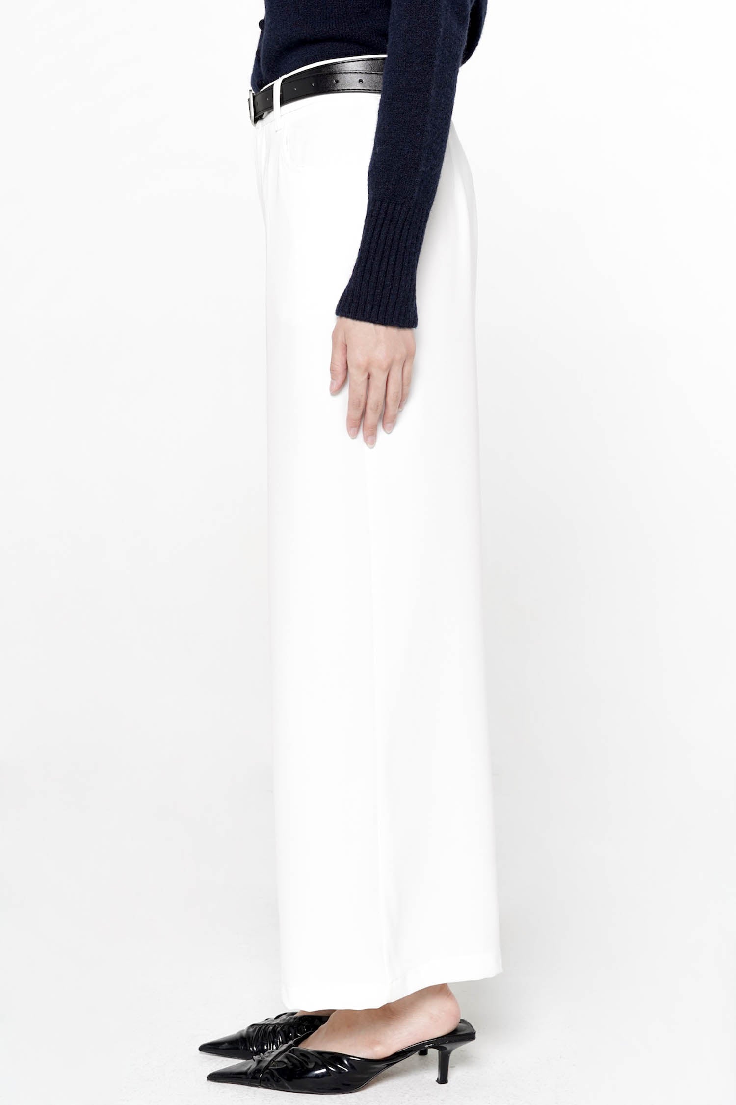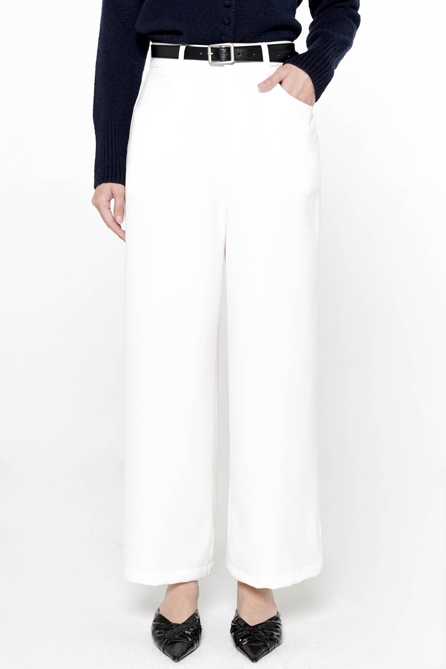 The Matilda Trouser reflects effortless sophistication through its clean tailoring and fluid wide-leg silhouette, crafted from premium polyester for a smooth finish and comfortable structure that holds its shape throughout the day. Designed with a flattering mid-to-high rise and a relaxed straight fall from the hip, it creates an elongated, polished profile while maintaining ease of movement, making it ideal for both professional settings and refined everyday wear. The minimalist pocket detailing and classic waistband enhance its timeless appeal, while the versatile palette—White for crisp elegance, Light Grey for modern subtlety, and Khaki for understated warmth—ensures seamless integration into a contemporary wardrobe. Elegant yet practical, this piece embodies quiet confidence and enduring style.