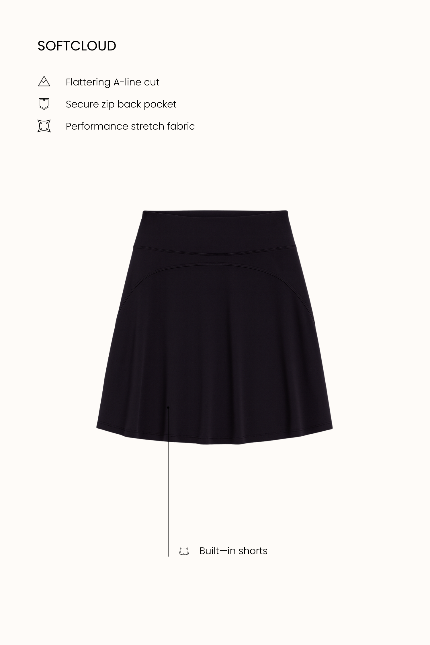 Own the court, the course, or the street with the Mind Skirt—where performance meets polish in a clean A-line cut. Crafted in SoftCloud™ fabric for buttery-soft comfort and effortless stretch, it’s designed with built-in shorts, side pockets, and a seamless back zipper pocket for function that never interrupts style. From padel and tennis to golf, travel, or casual weekends, this skirt adapts to every move.