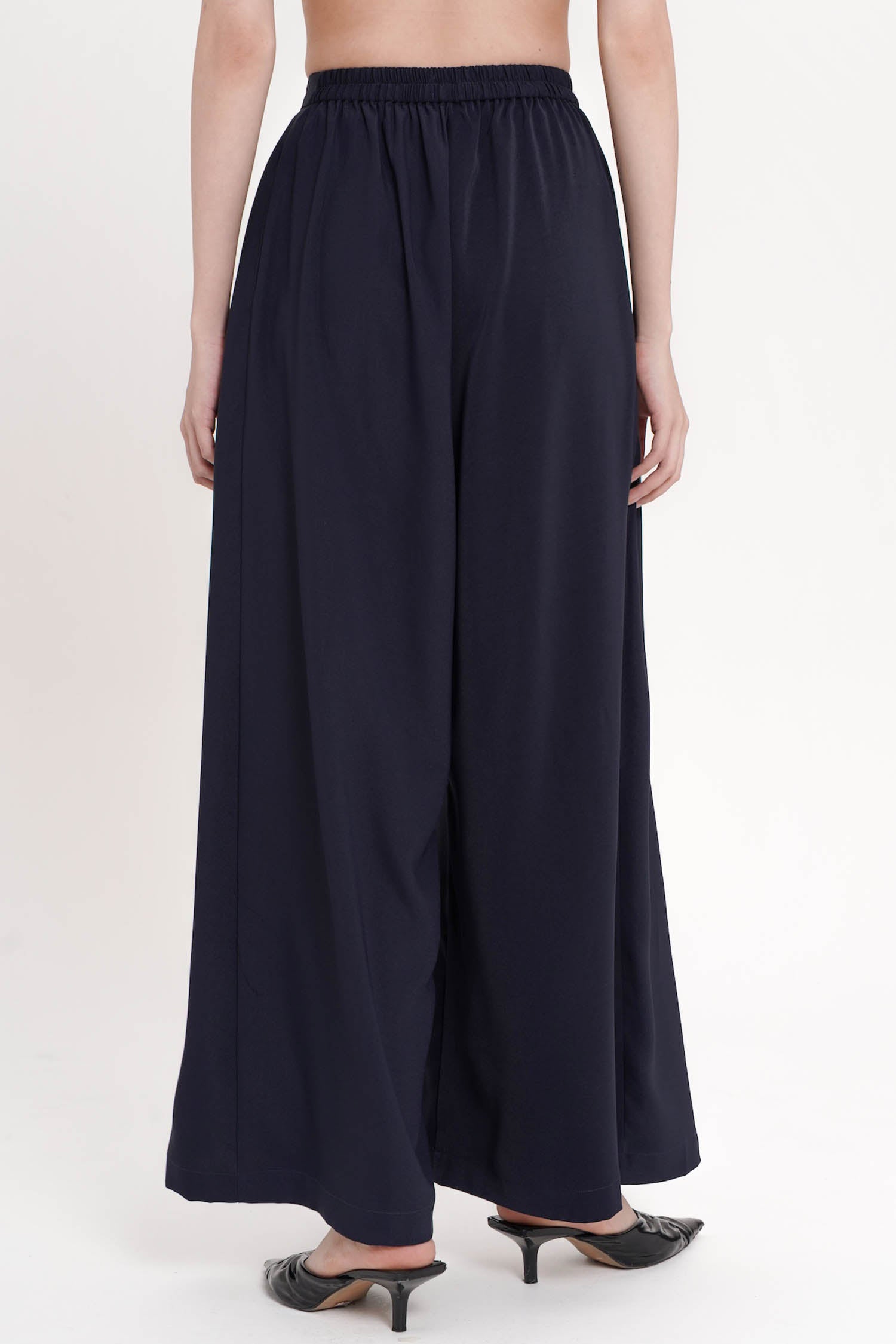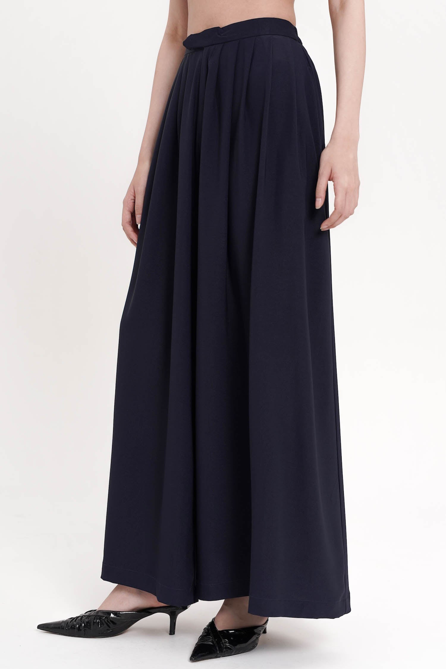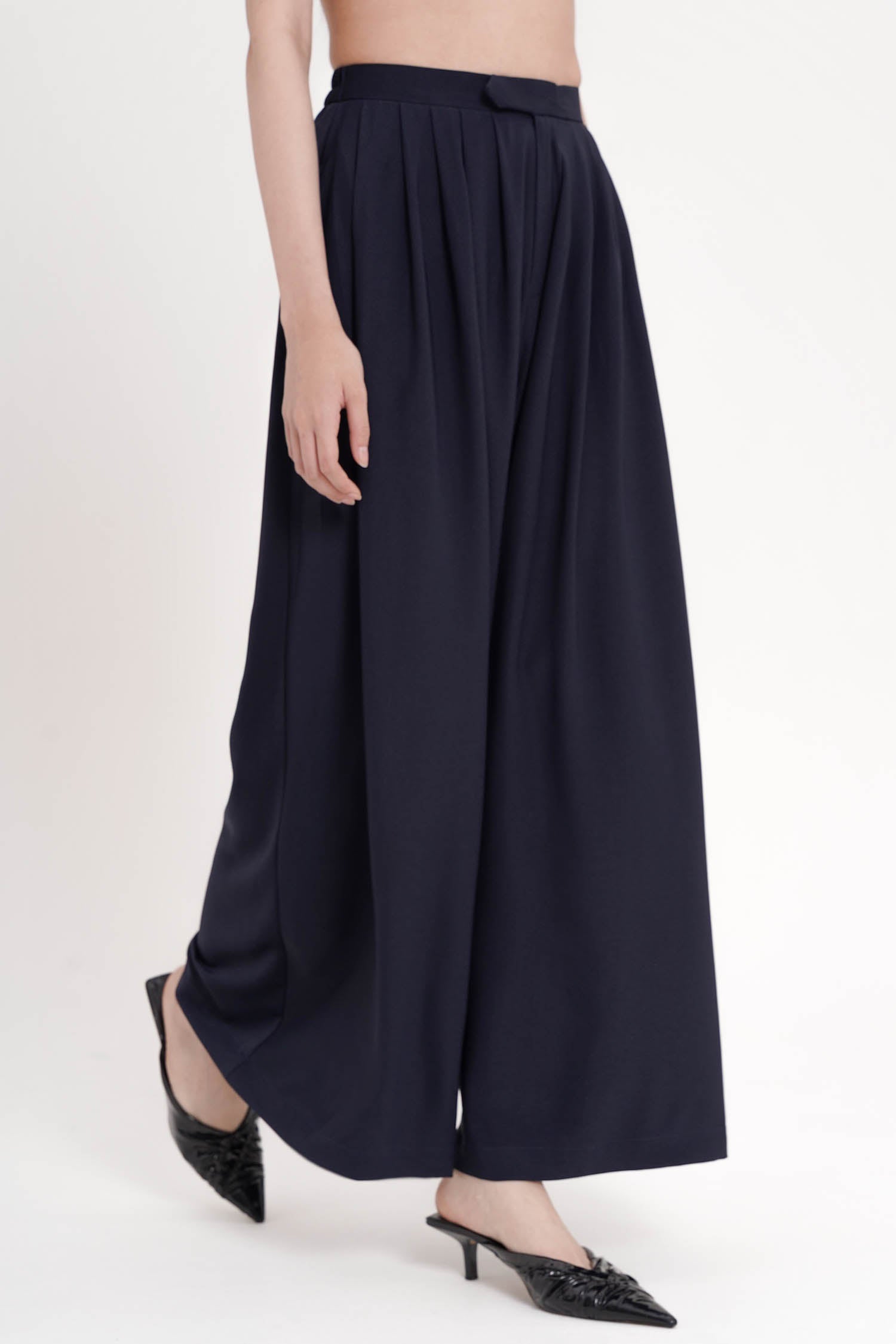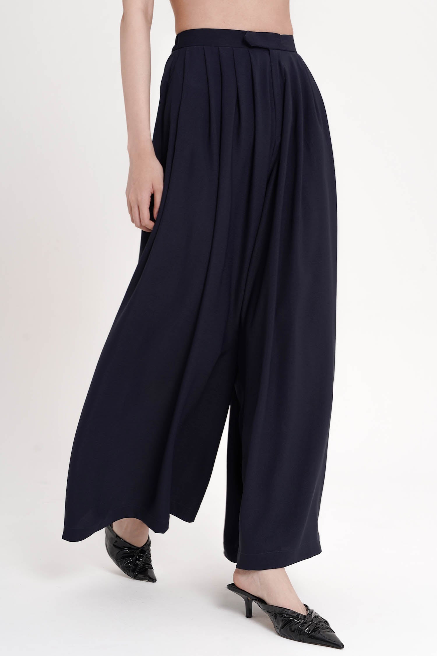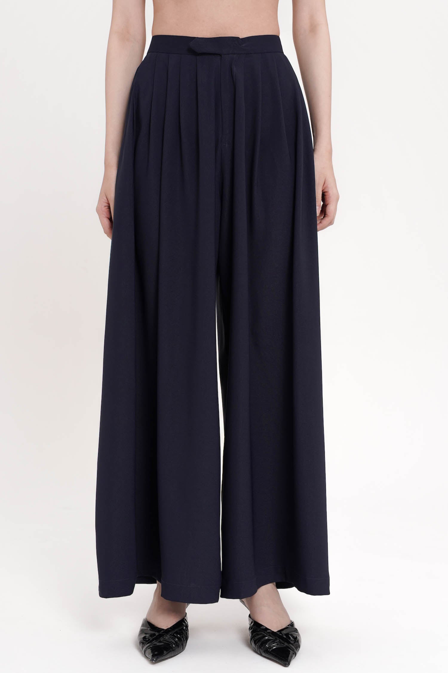 Designed for graceful movement and relaxed structure, the Nerida Trousers offer a voluminous wide-leg cut enriched by fluid pleating throughout. Made from a breathable cotton poly blend, they feature a soft waistband detail that sits comfortably at the waist while maintaining a tailored impression. Understated yet striking, these trousers effortlessly balance ease and elegance.