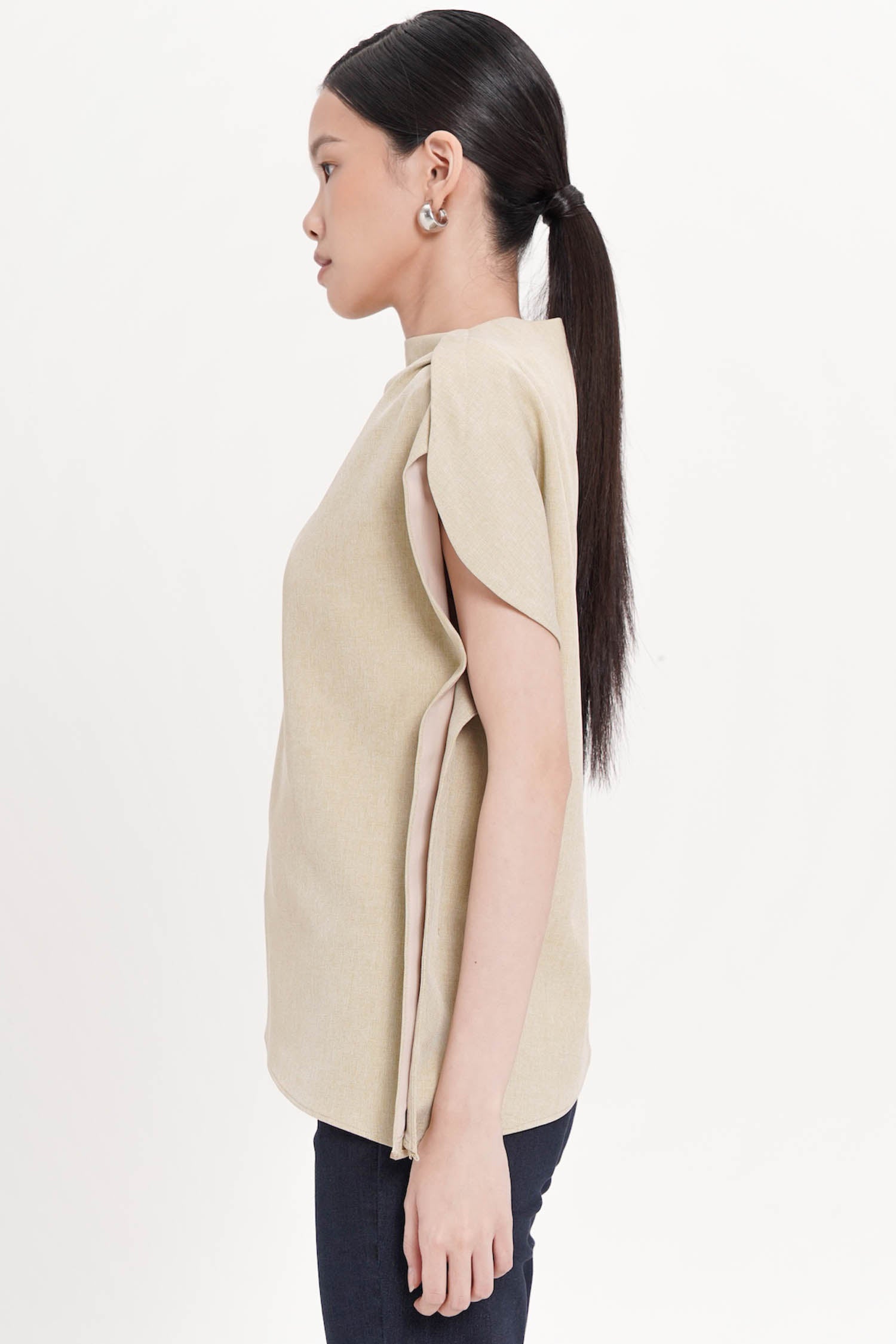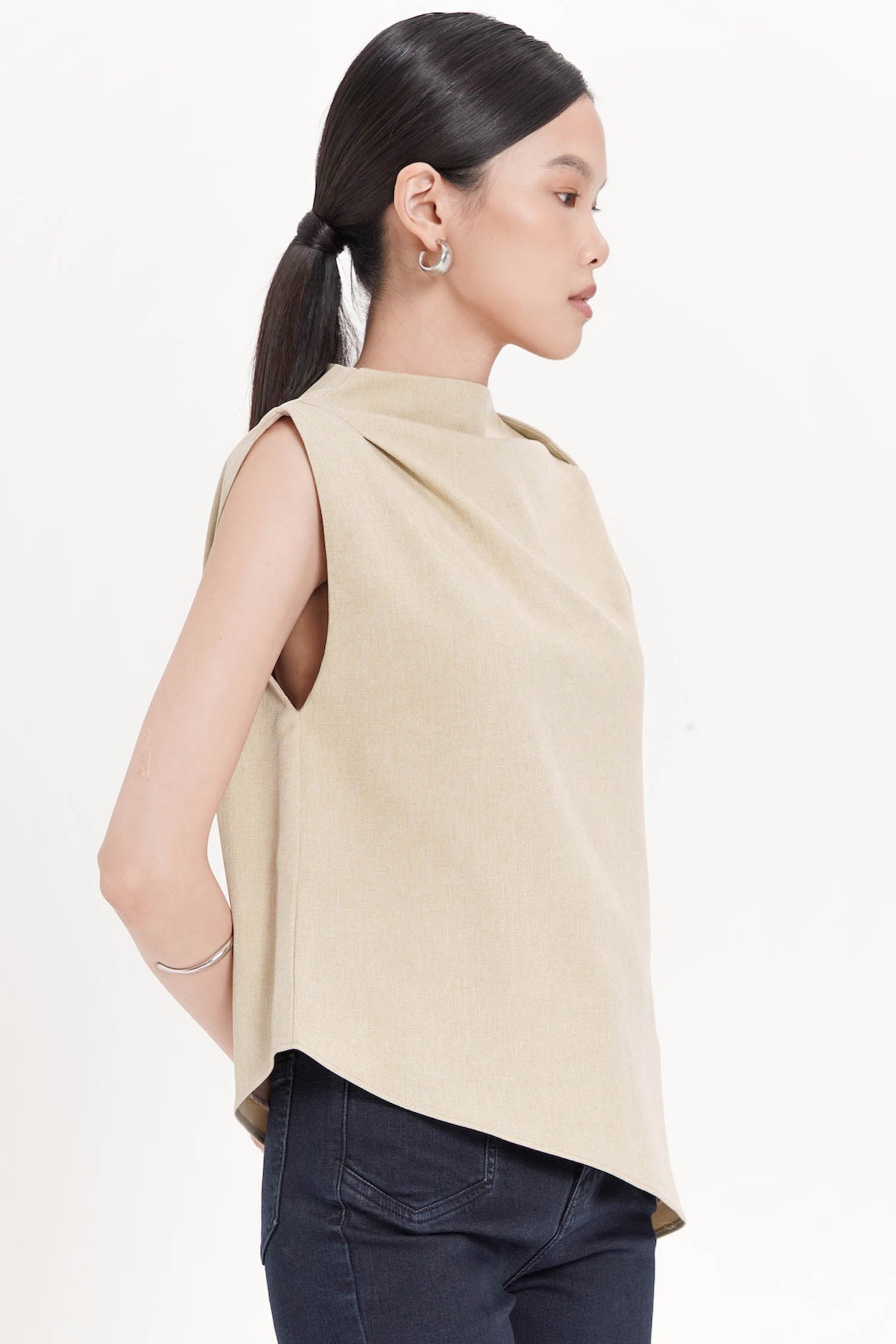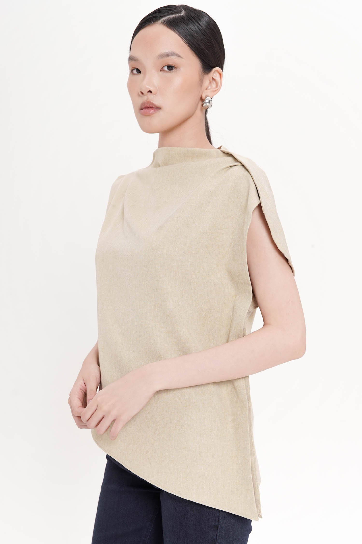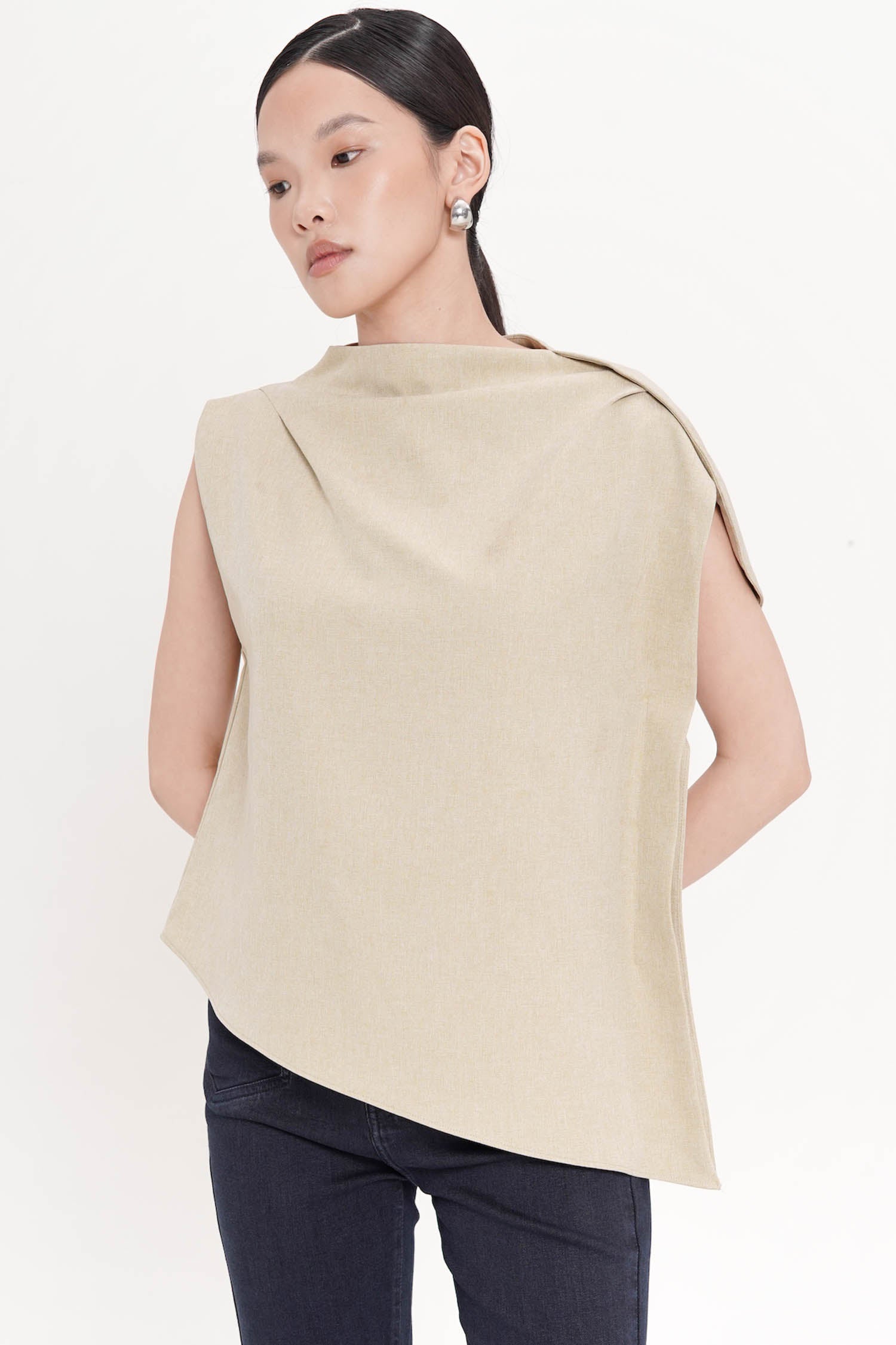 The Neuf Asymmetrical Top redefines modern sophistication through clean lines and architectural form. Crafted from luxurious semi wool, this piece showcases a structured yet fluid silhouette, featuring a softly draped shoulder and an artfully angled hem that lends an air of effortless refinement. Its sleeveless design and precise tailoring create a balanced interplay between strength and subtle femininity. Available in Broken White and Ash Brown, the Neuf Top is a statement of quiet confidence—perfect for those who appreciate contemporary elegance with a timeless edge.