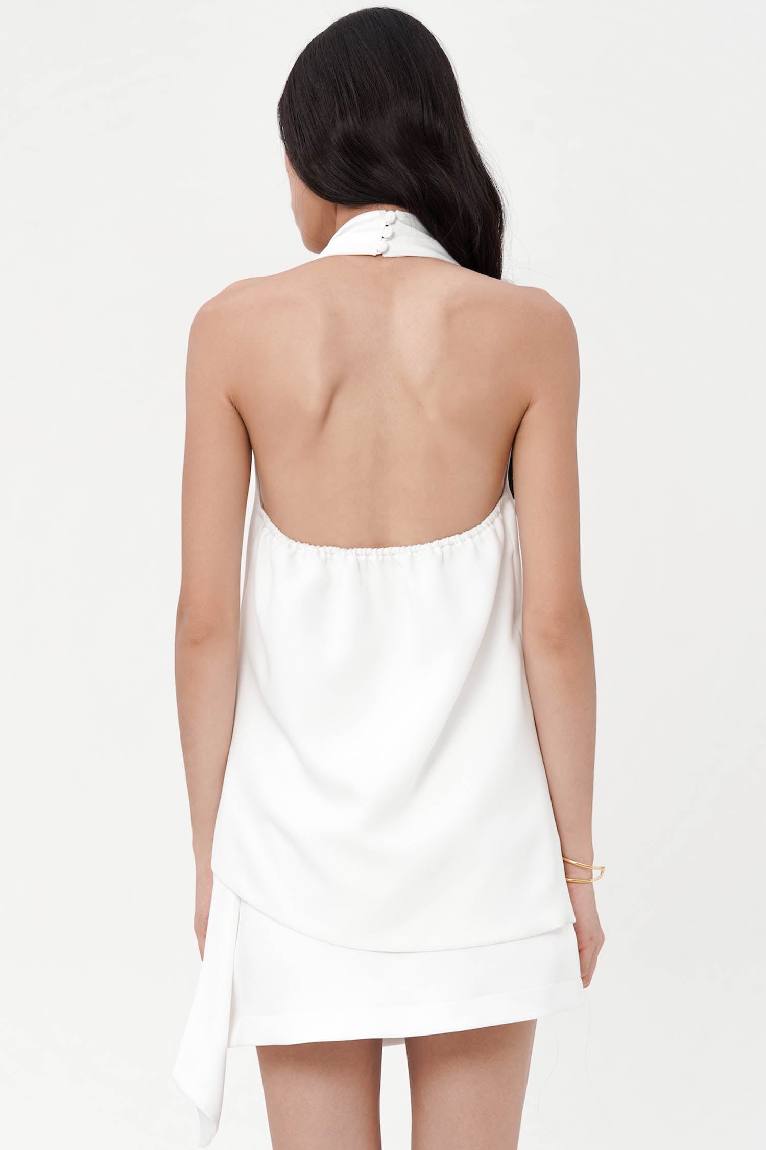 The Niki Draped Top embodies refined elegance through its fluid drapery and sculptural detailing. Cra...