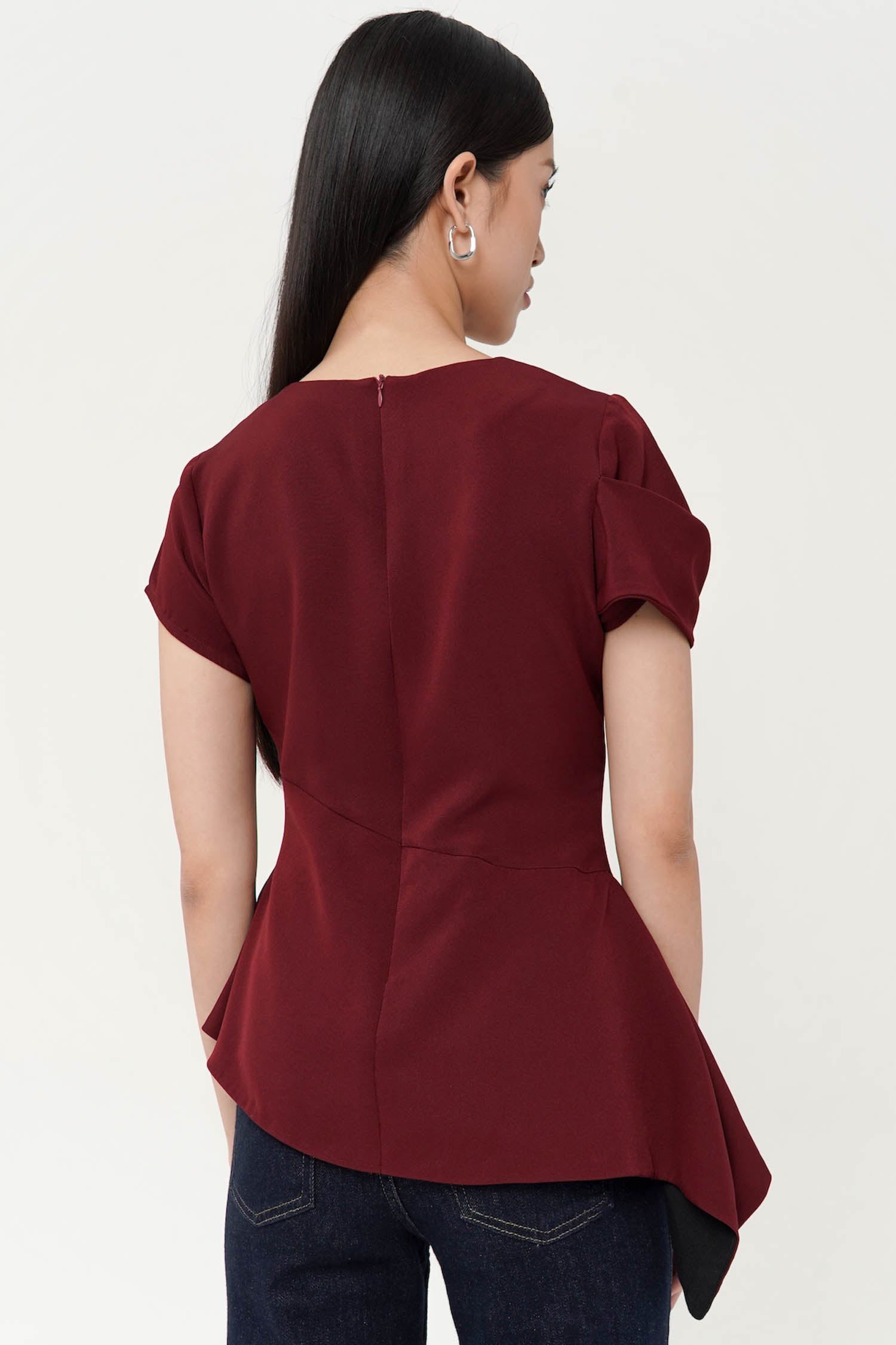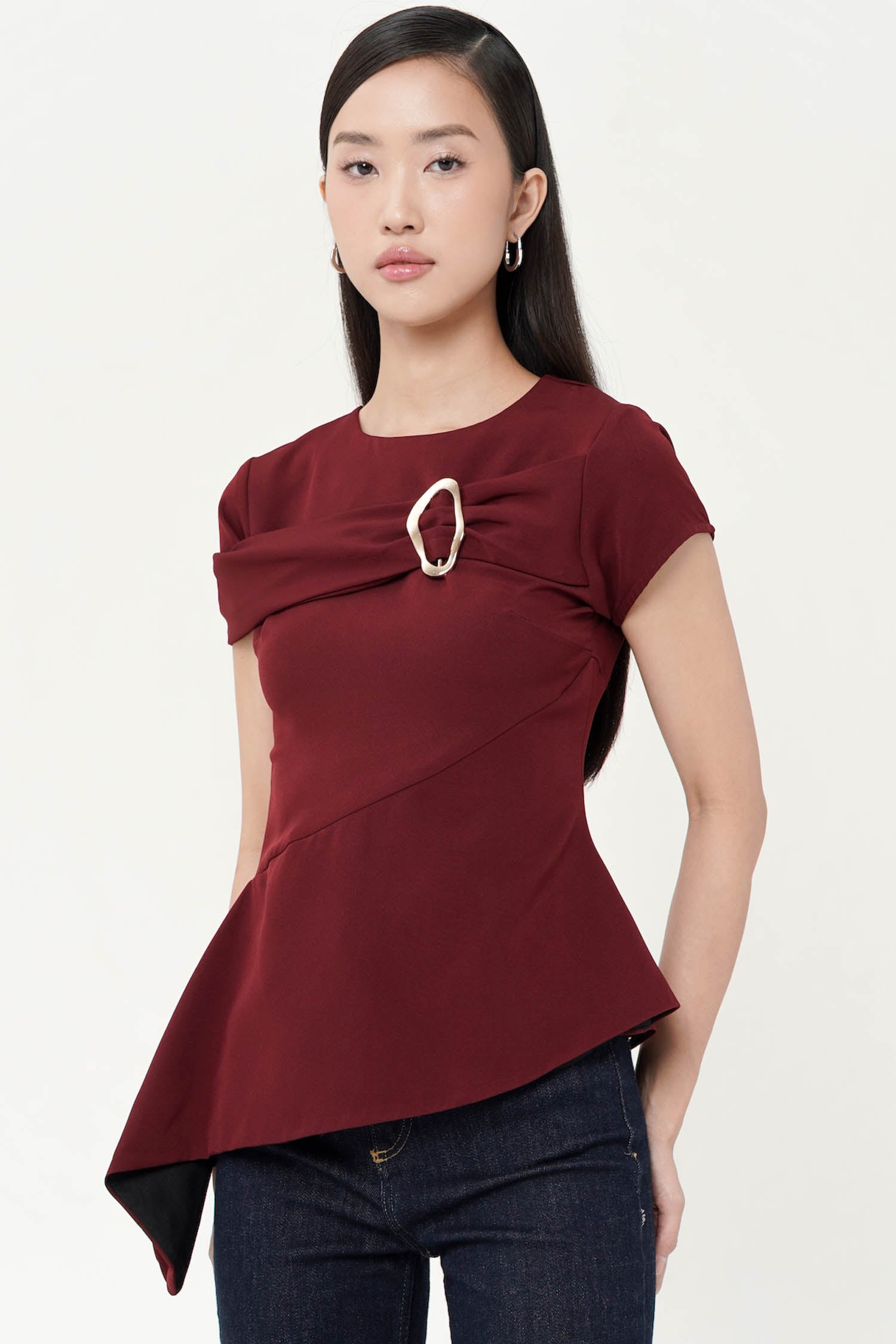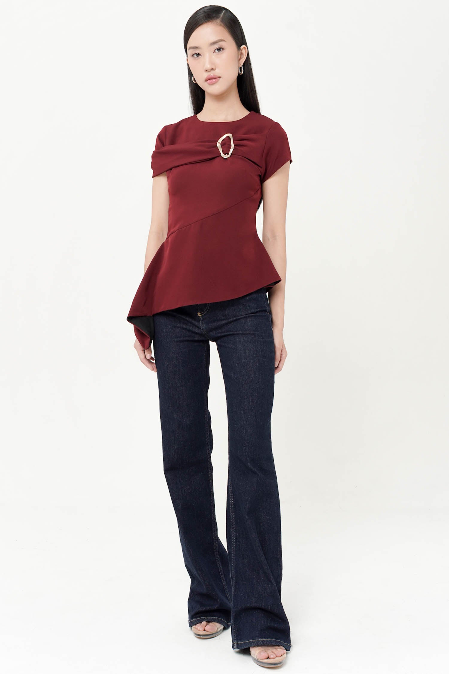 The Nino Asymmetric Brooch Top is a striking blend of elegance and modern artistry, crafted from refined semi wool for a polished yet comfortable finish. Designed with an asymmetric drape that cascades gracefully to one side, this top sculpts a flattering silhouette while offering a contemporary twist on classic tailoring. The focal point lies in its sculptural brooch detail, positioned at the neckline to gather soft pleats and add a touch of understated glamour. Available in timeless black and rich maroon, the Nino top is a versatile piece that transitions effortlessly from refined daywear to evening sophistication.