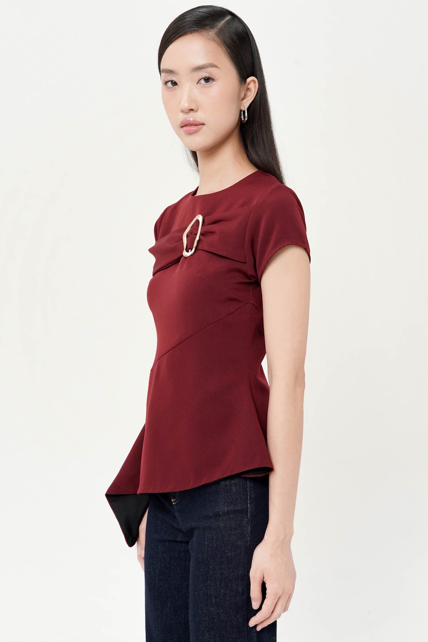The Nino Asymmetric Brooch Top is a striking blend of elegance and modern artistry, crafte...