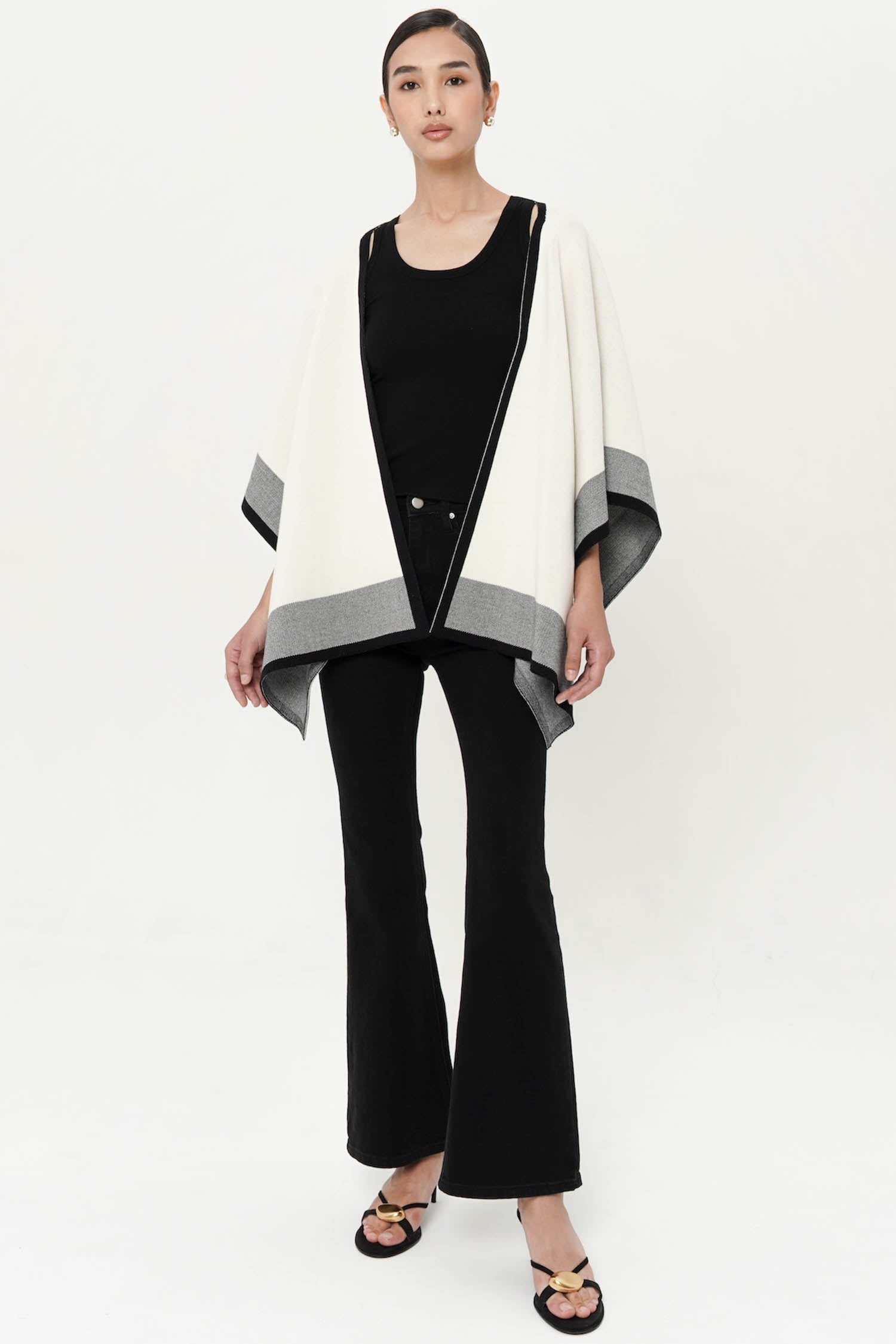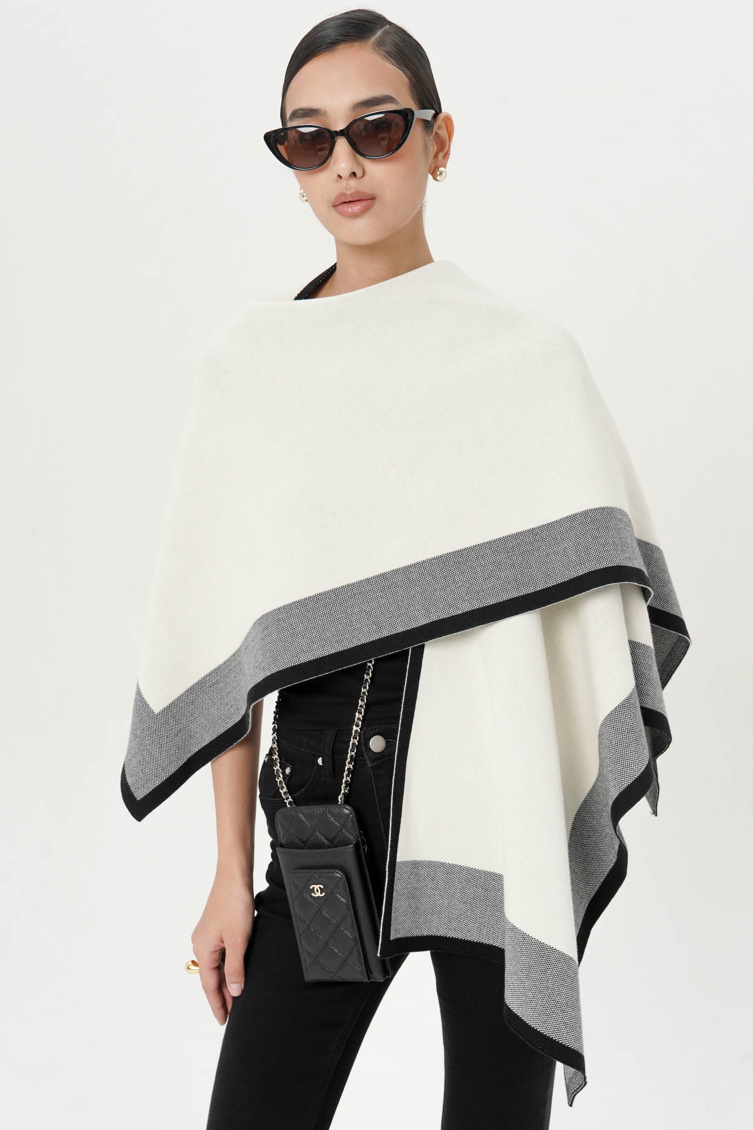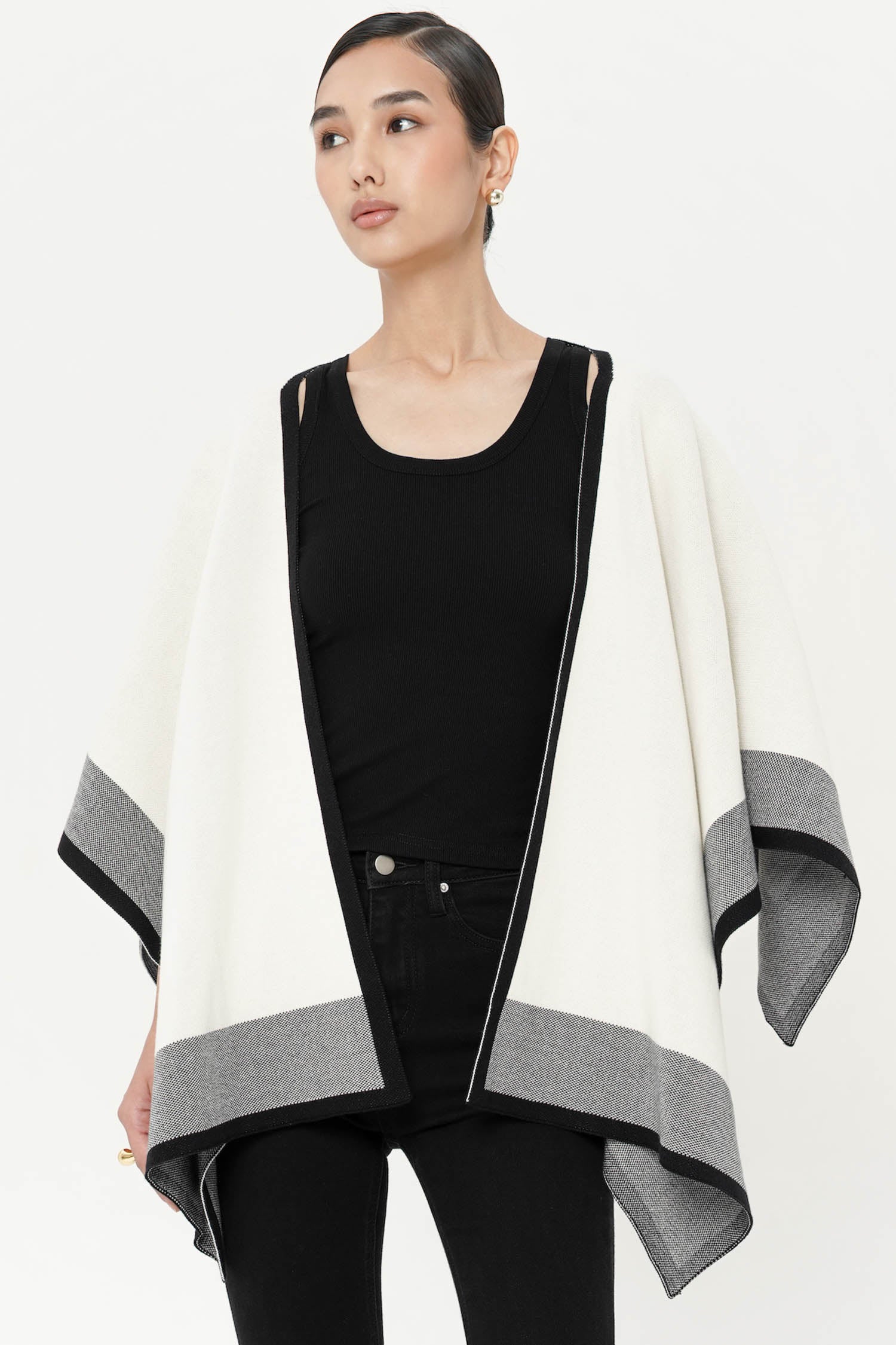 The Norris Cape Shawl is a V-cut shawl that can be draped around your shoulder, or wrapped around your neck as you like. It is the perfect outerwear choice for those looking for an easy-to-style minimalist piece, especially for travellers. Crafted from a lightweight knit fabric, this cape is engineered for comfort, drape, and movement. Comes in four classic neutral shades that gives off effortless "old-money aesthetic" look: Black, Taupe, Nude and Creme combination.