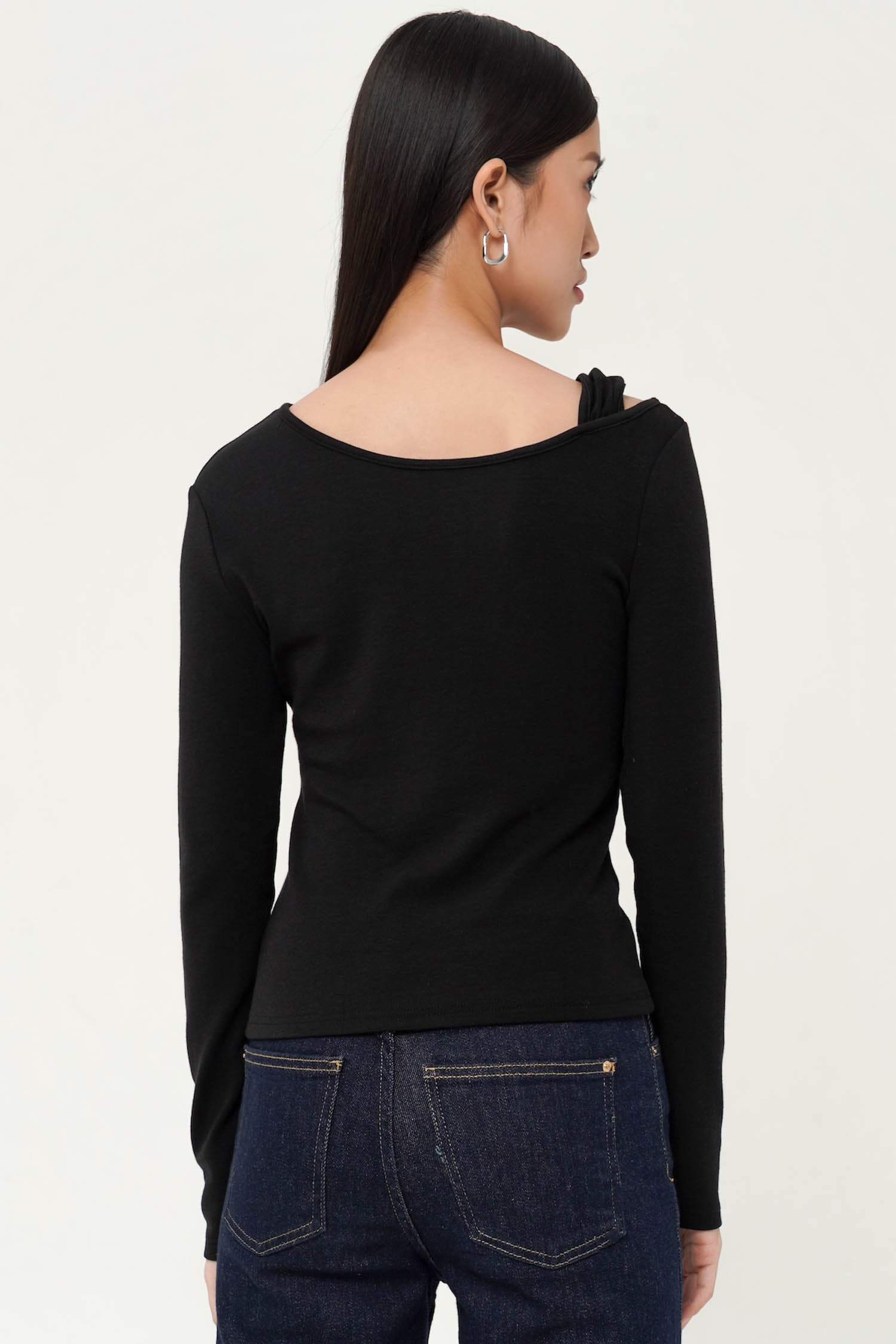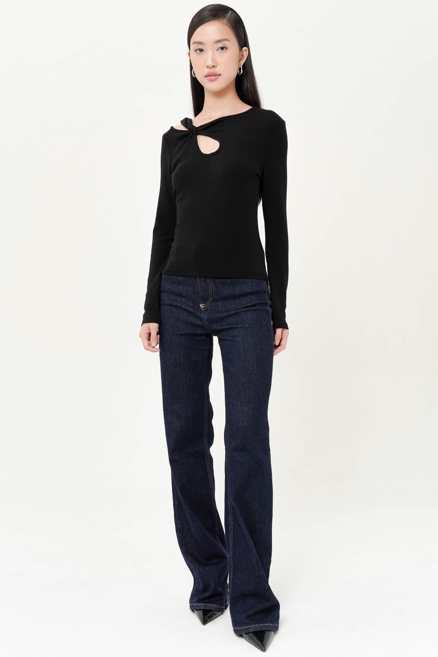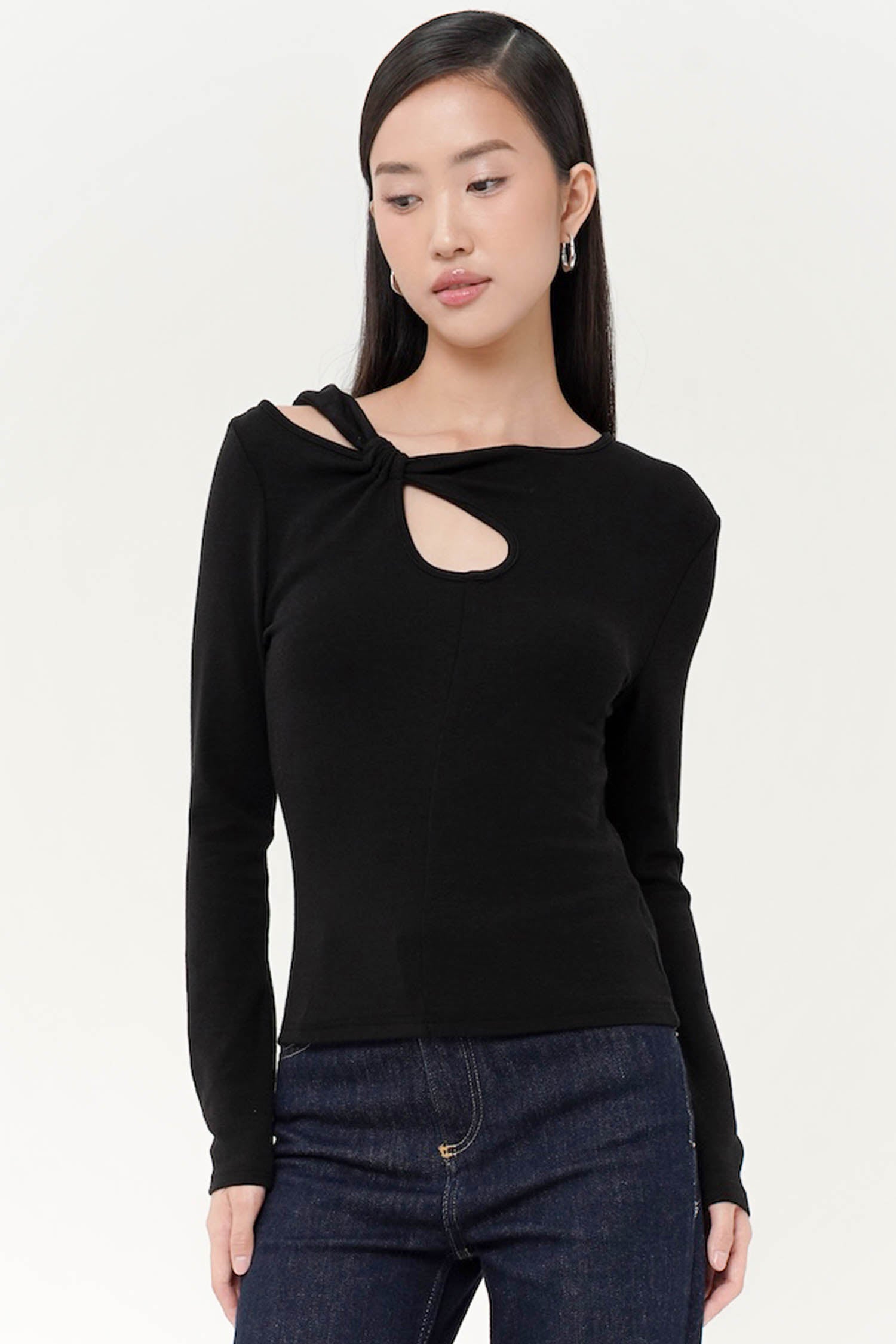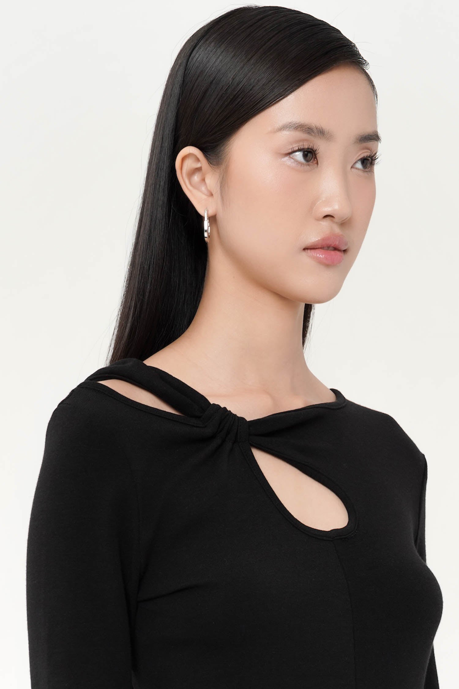 The Nour Cut Out Long Sleeve Top redefines modern minimalism with a daring yet refined twist...