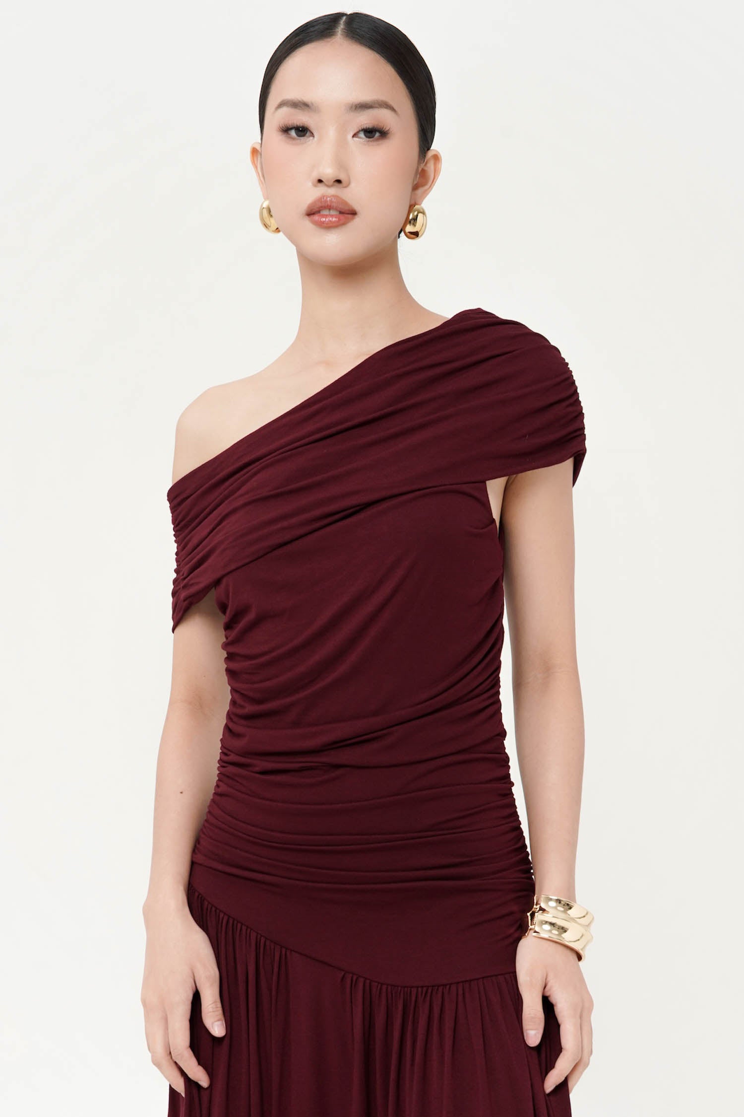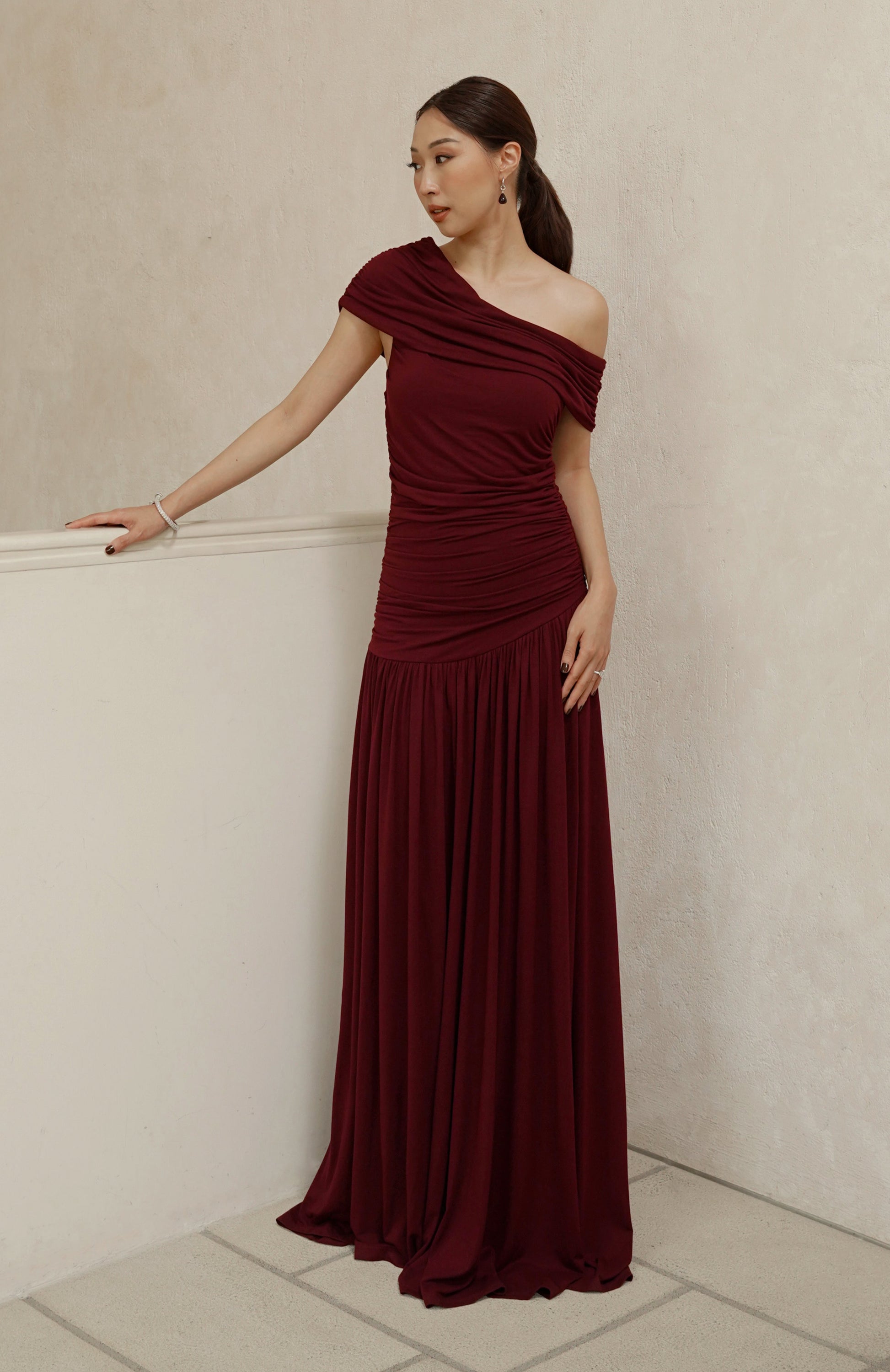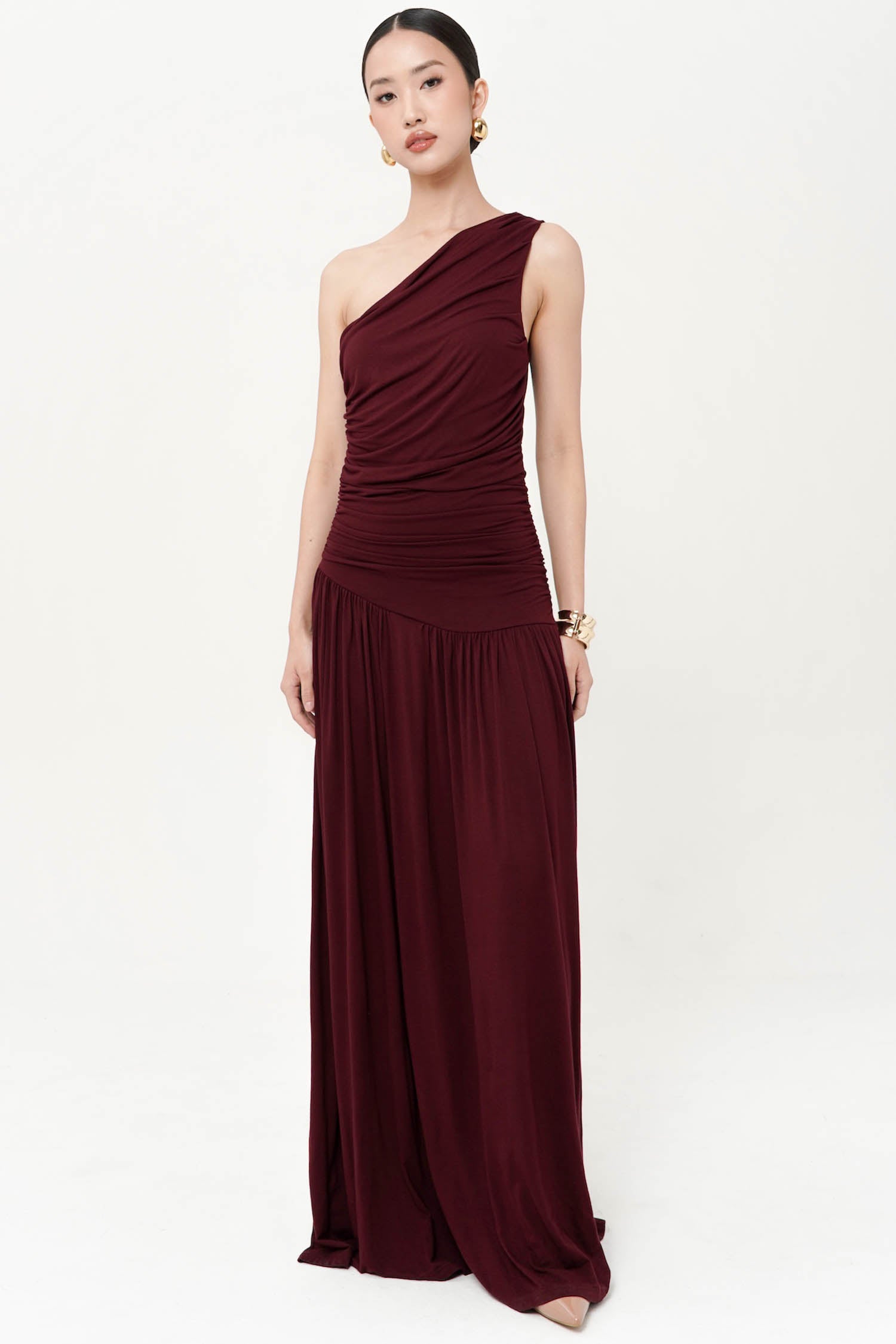 OLIVIA ONE SHOULDER MAXI DRESS WITH OUTER