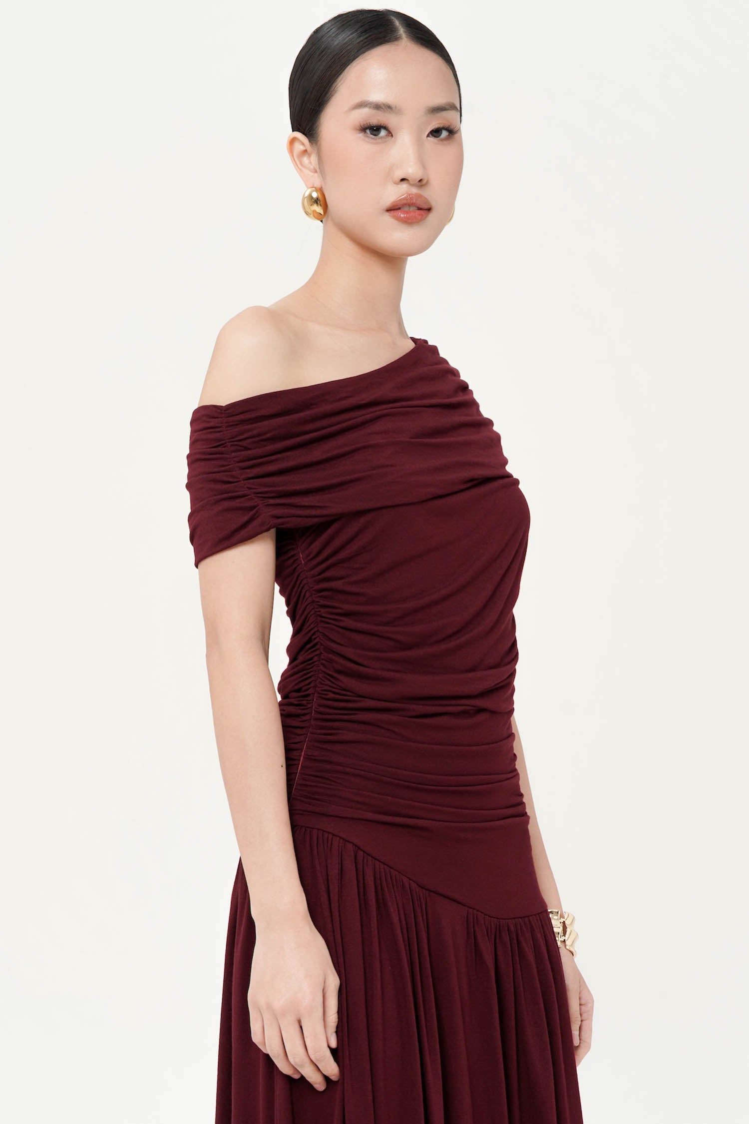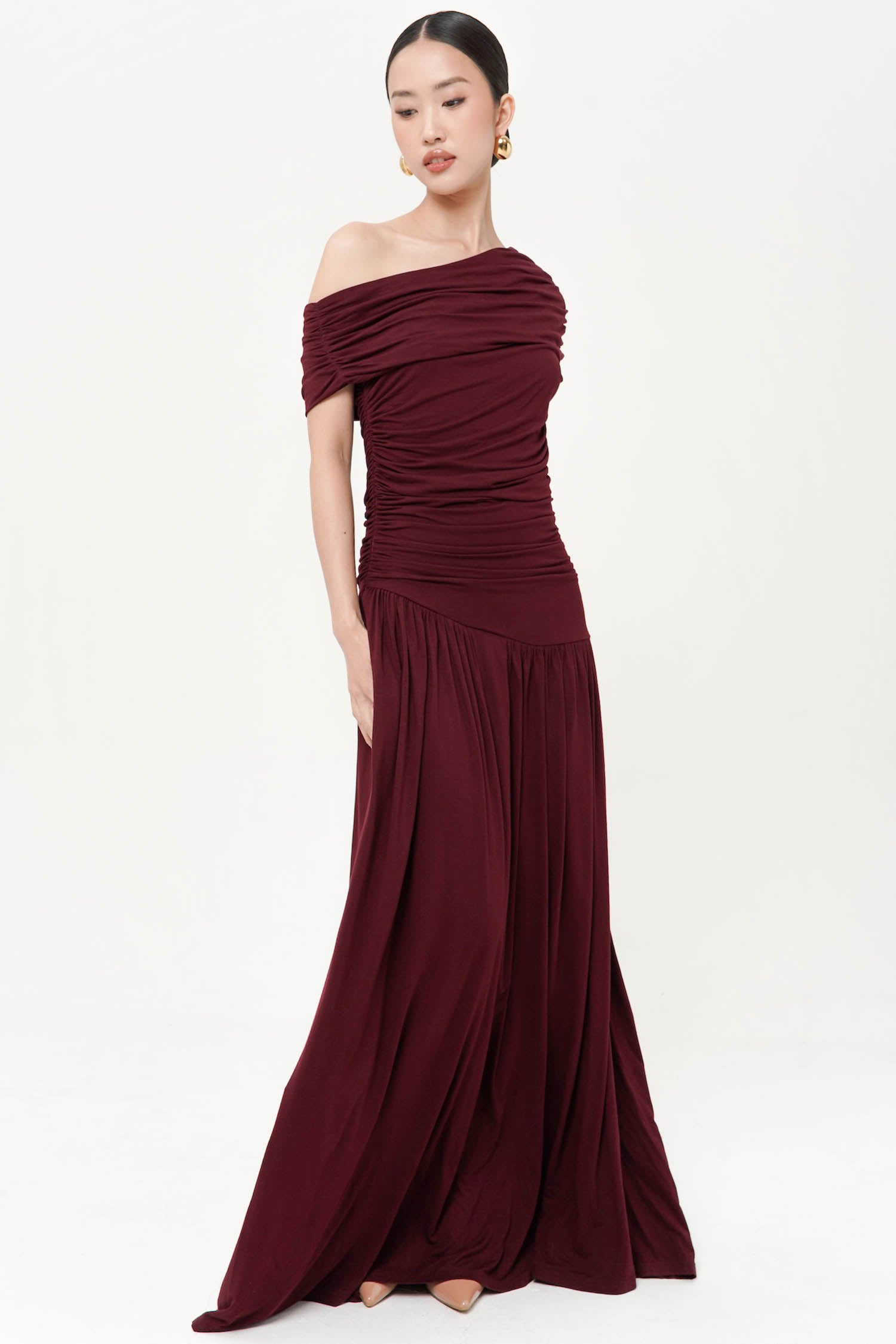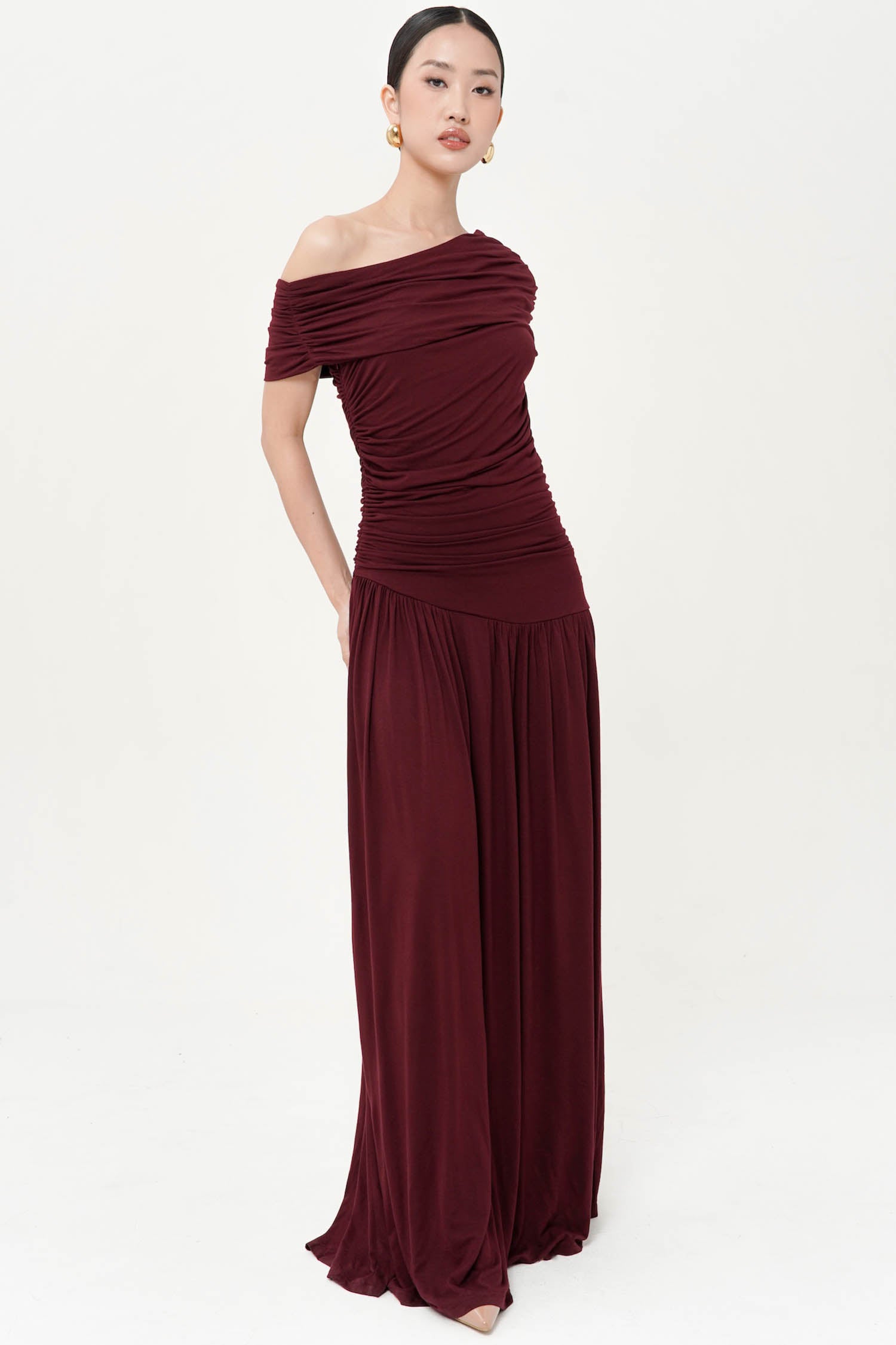 OLIVIA ONE SHOULDER MAXI DRESS WITH OUTER