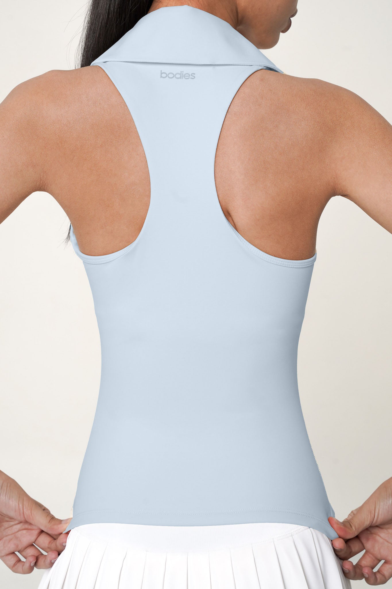 Own the day with Pavilion Polo Top, a modern twist on the classic polo. With its subtle V-neckline, structured collar, and flattering cut, it strikes the perfect balance between sporty ease and refined style. Removable bra padding adds versatile support, while the design naturally enhances your figure without trying too hard.