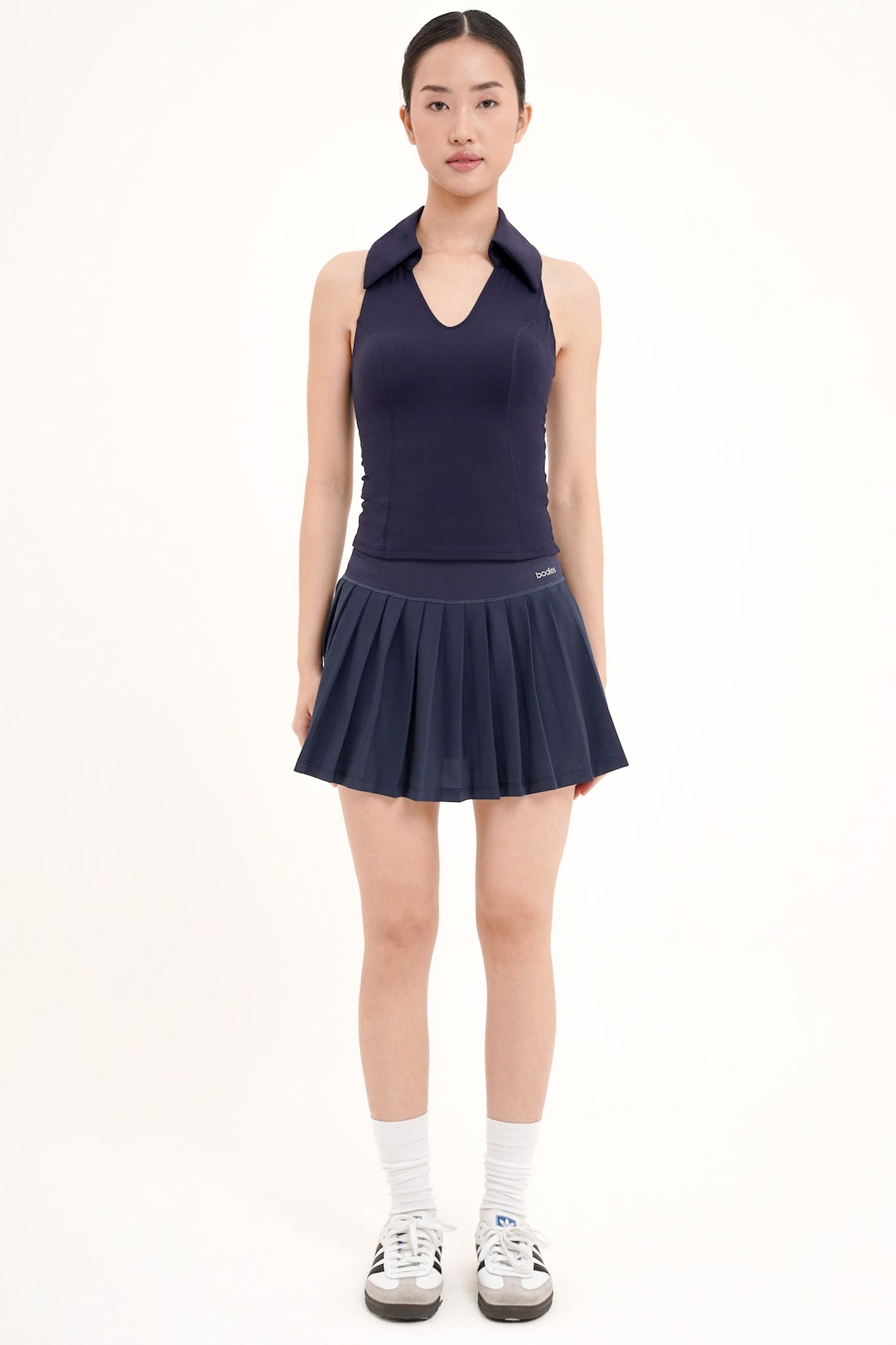 Own the day with Pavilion Polo Top, a modern twist on the classic polo. With its subtle V-neckline, structured collar, and flattering cut, it strikes the perfect balance between sporty ease and refined style. Removable bra padding adds versatile support, while the design naturally enhances your figure without trying too hard.