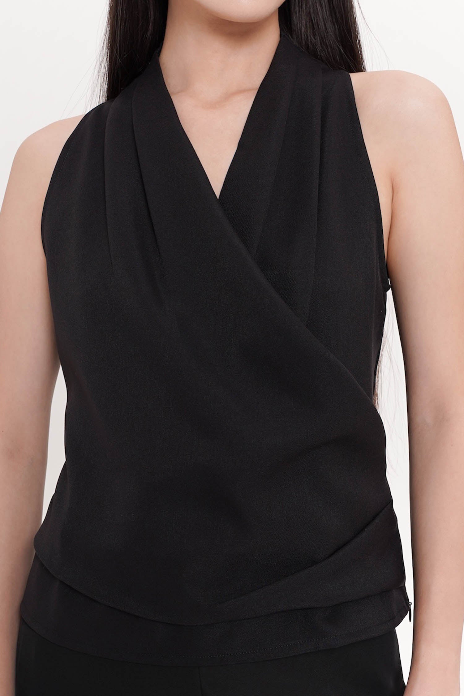 Refined and effortlessly graceful, the Pine Wrap Top is a study in subtle sophistication. Crafted from premium semi wool, its halter neckline and wrap-front design delicately frame the shoulders and waist, creating a flattering silhouette that exudes quiet confidence. A softly tied back detail adds a touch of charm and adjustability, while the overall minimalism allows it to transition seamlessly from daywear to evening elegance. Available in Broken White and Black, Pine is the epitome of contemporary femininity with timeless appeal.