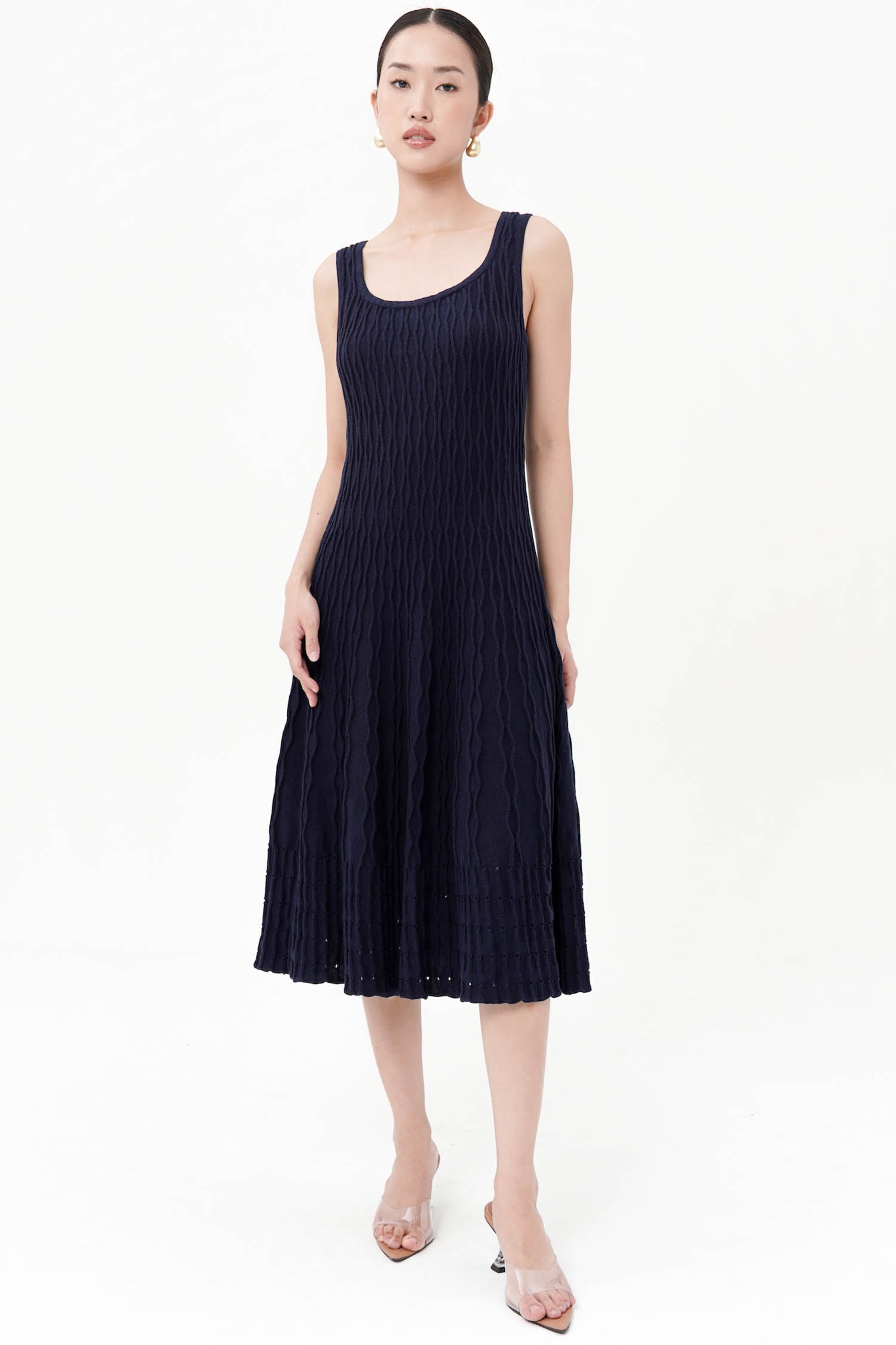 Saffron Midi Knit Dress In Navy