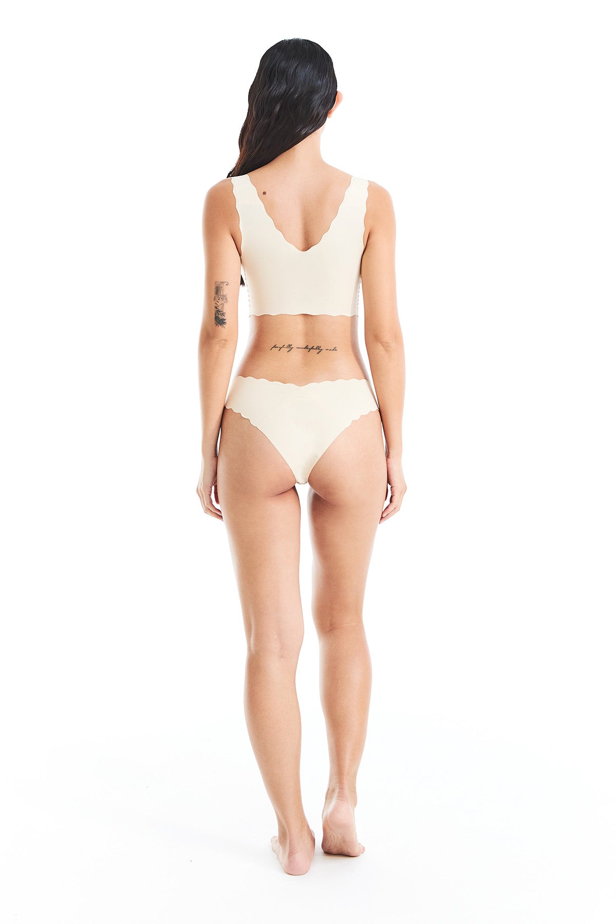 SCALLOP V-SHAPE PANTY IN CREAM The Scallop V-shape Panty offers a low rise and elastic waist for a comfortable and se...