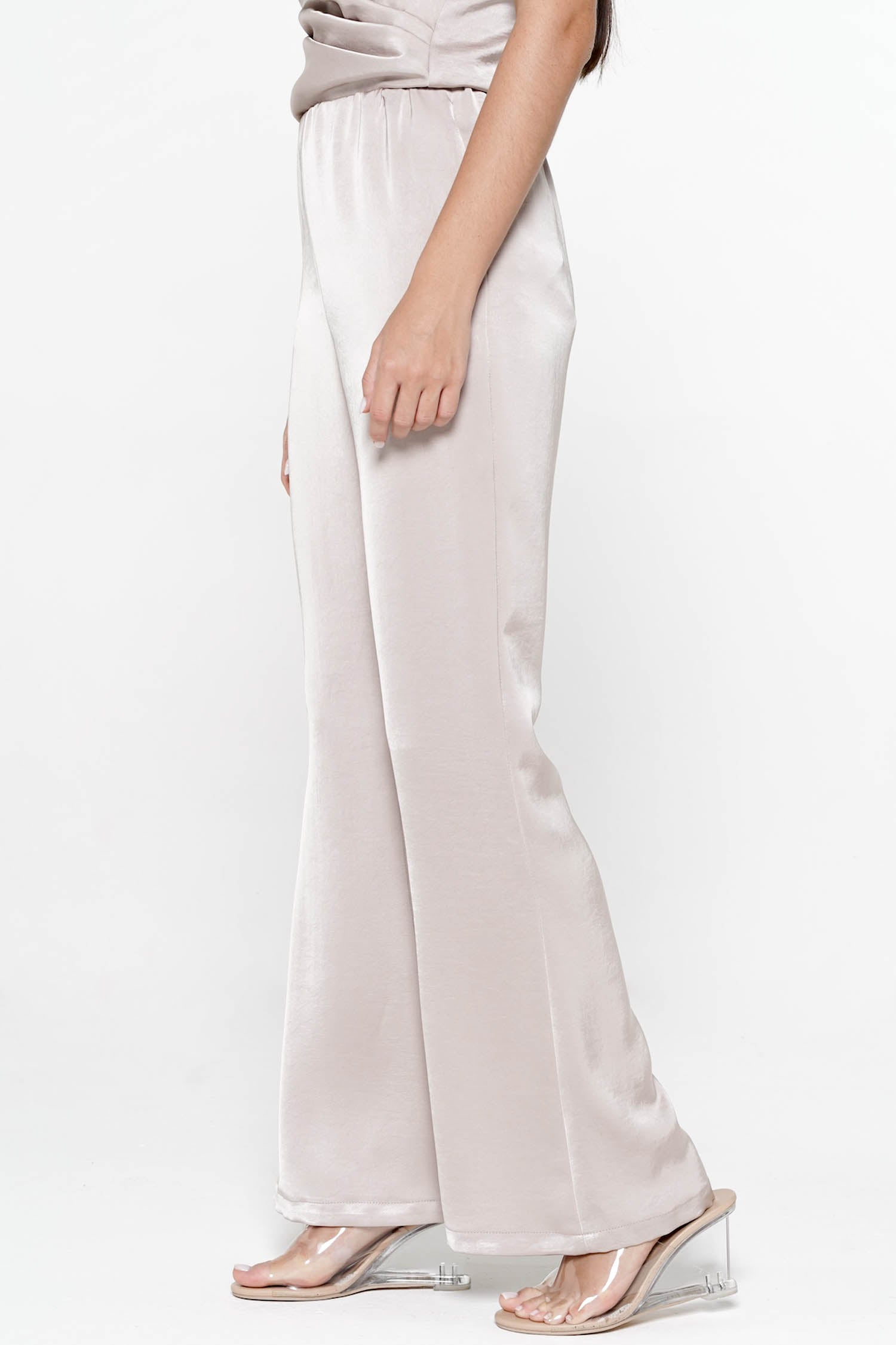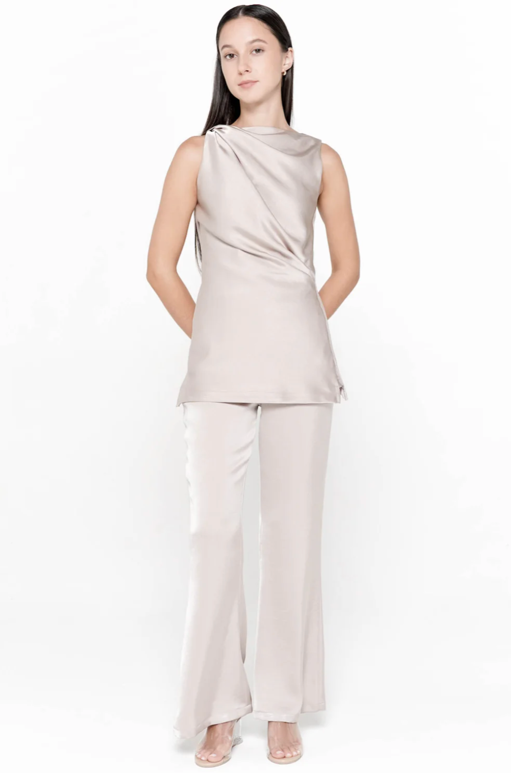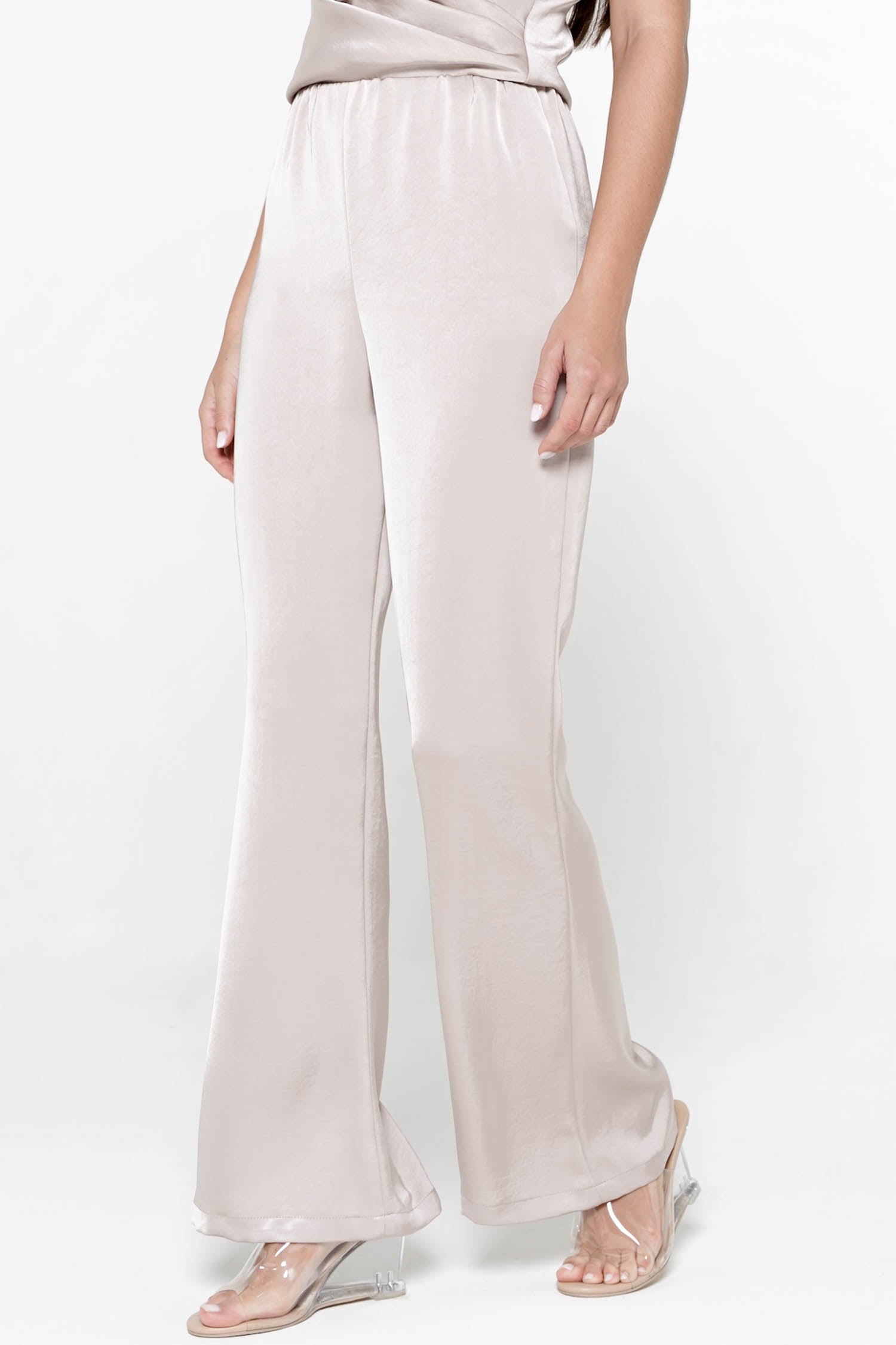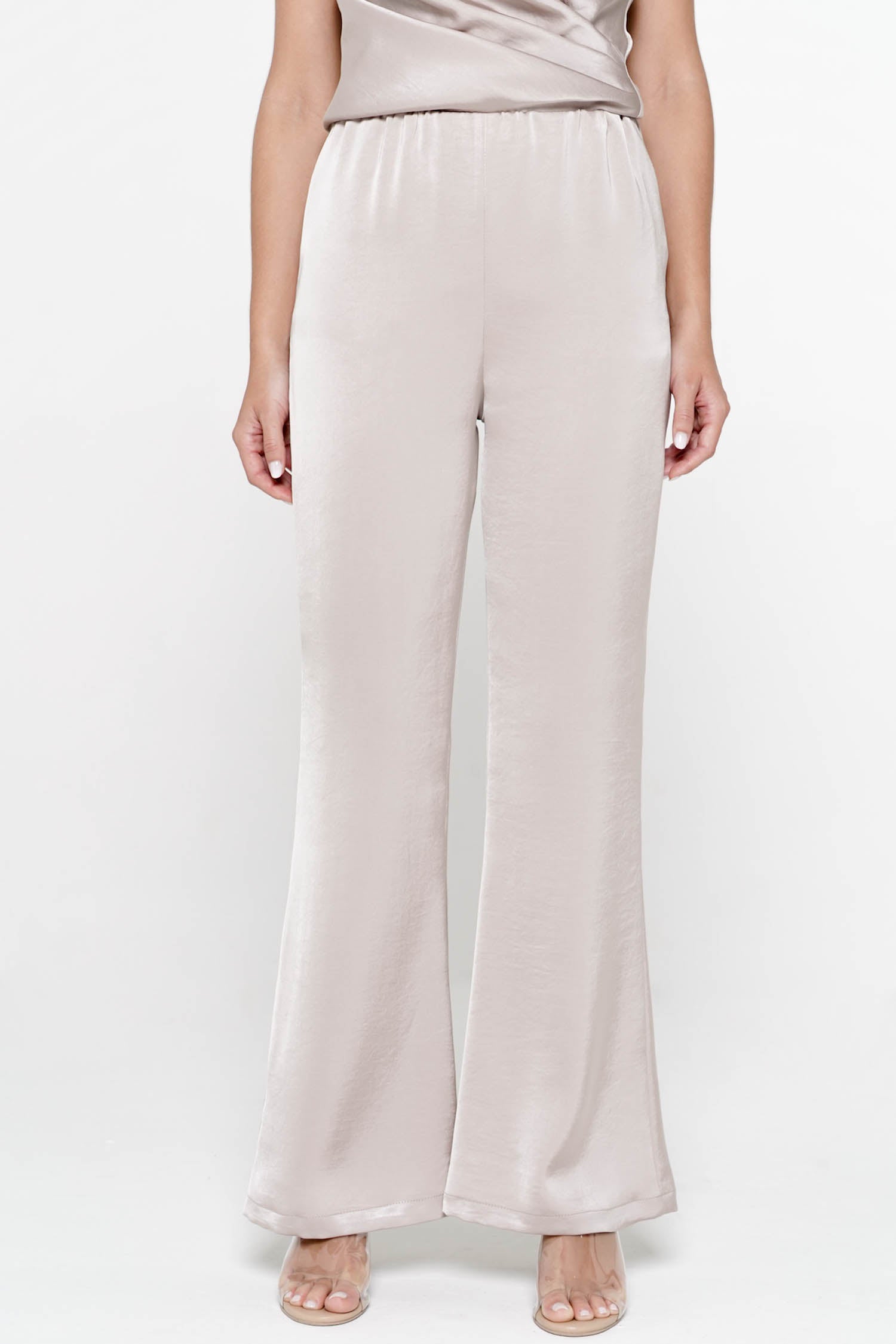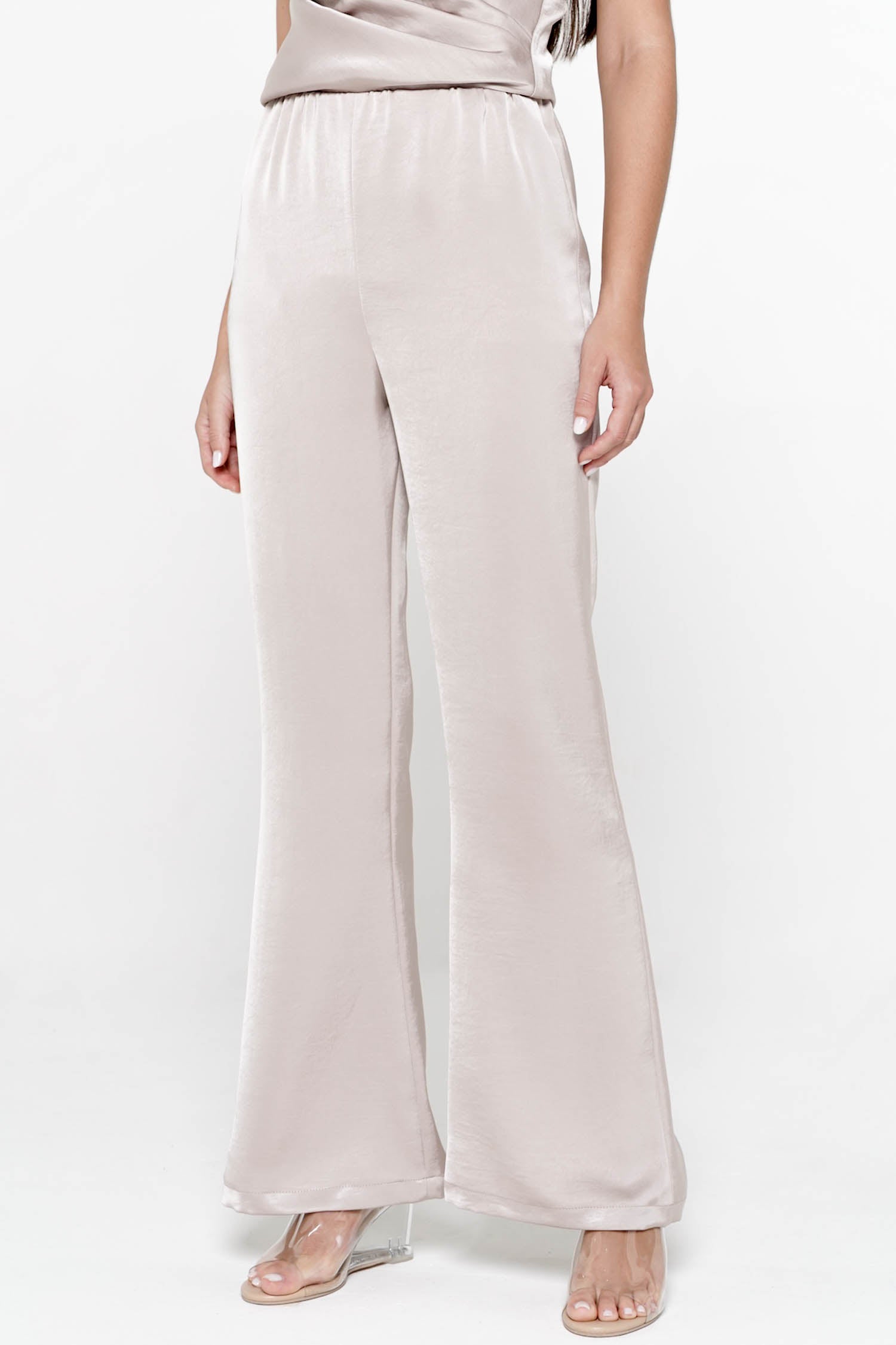 The Serena Satin Pants embody understated luxury with their fluid silhouette and luminous satin silk finish, designed to drape effortlessly along the body while offering exceptional comfort. Cut in a flattering high-waisted profile with a graceful wide-leg fall, they create an elongated, refined look suitable for both elevated daywear and evening elegance. The smooth texture catches the light with a subtle sheen, enhancing the richness of each tone—Butter for soft sophistication, Cocoa for timeless depth, and Etoupe for modern neutrality. Perfectly paired with the Serena Drape Top or styled independently, these trousers deliver a polished statement of quiet confidence and contemporary femininity.