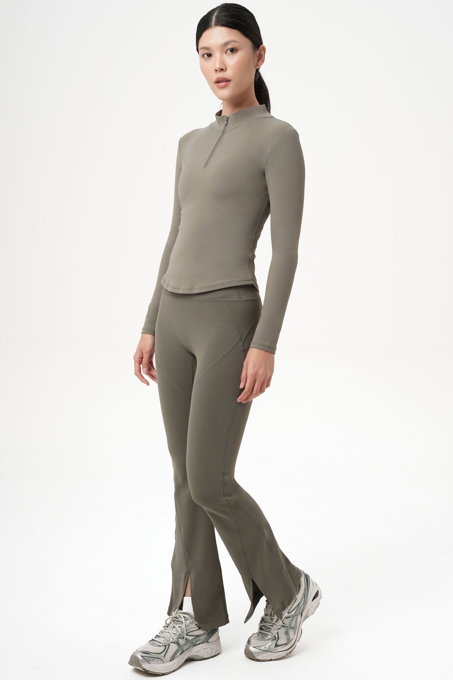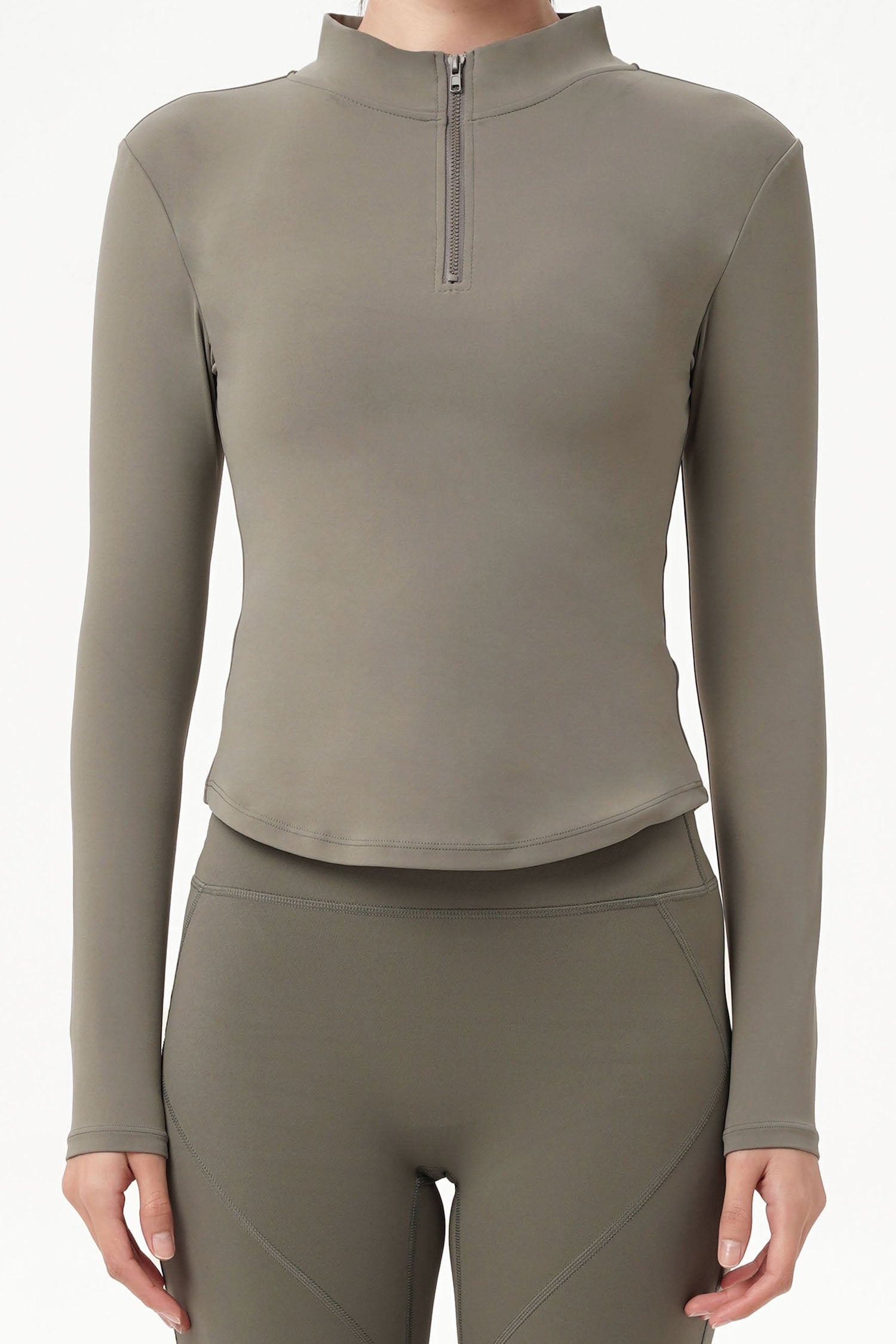 A polished long sleeve with an effortless edge. Stream Long-sleeved Top blends sporty inspiration with a clean, modern finish, featuring a subtle high neck and a sleek center zipper you can wear open or closed. The close-to-body silhouette creates a refined look, while the soft stretch fabric keeps things comfortable from morning plans to evening errands. Simple, versatile, and endlessly wearable layer that fits right into any outfit.