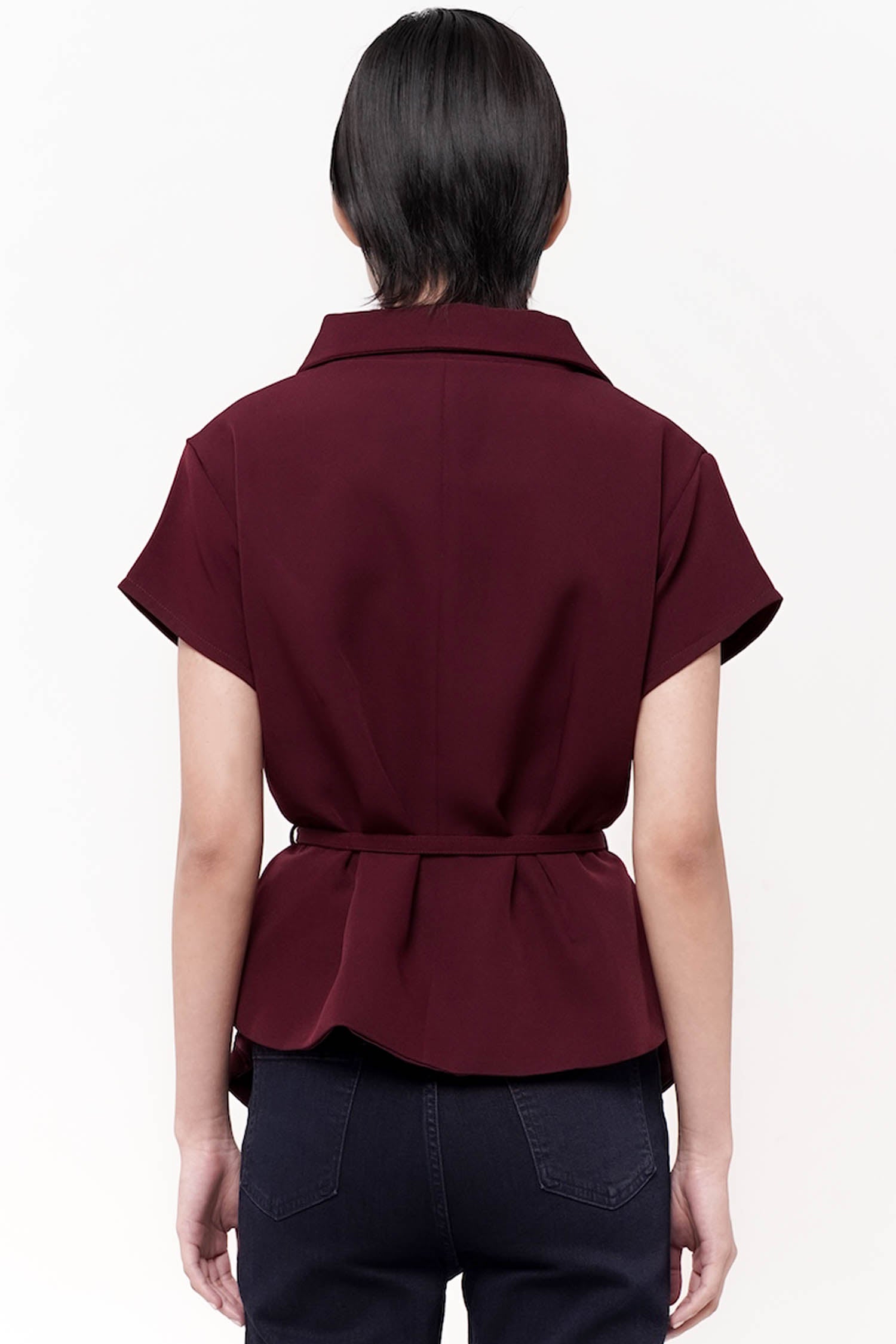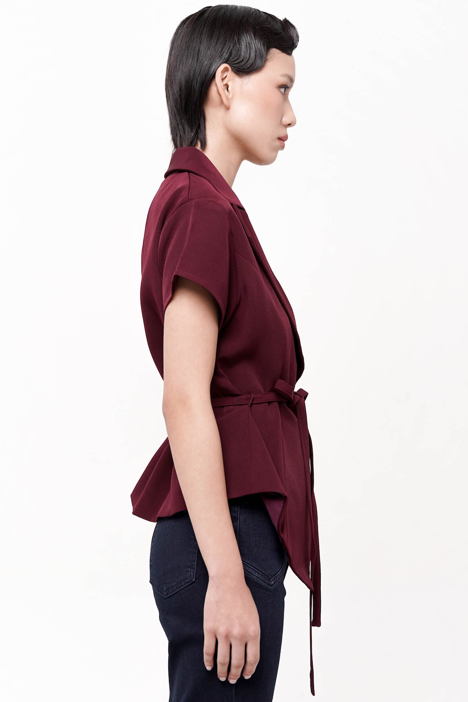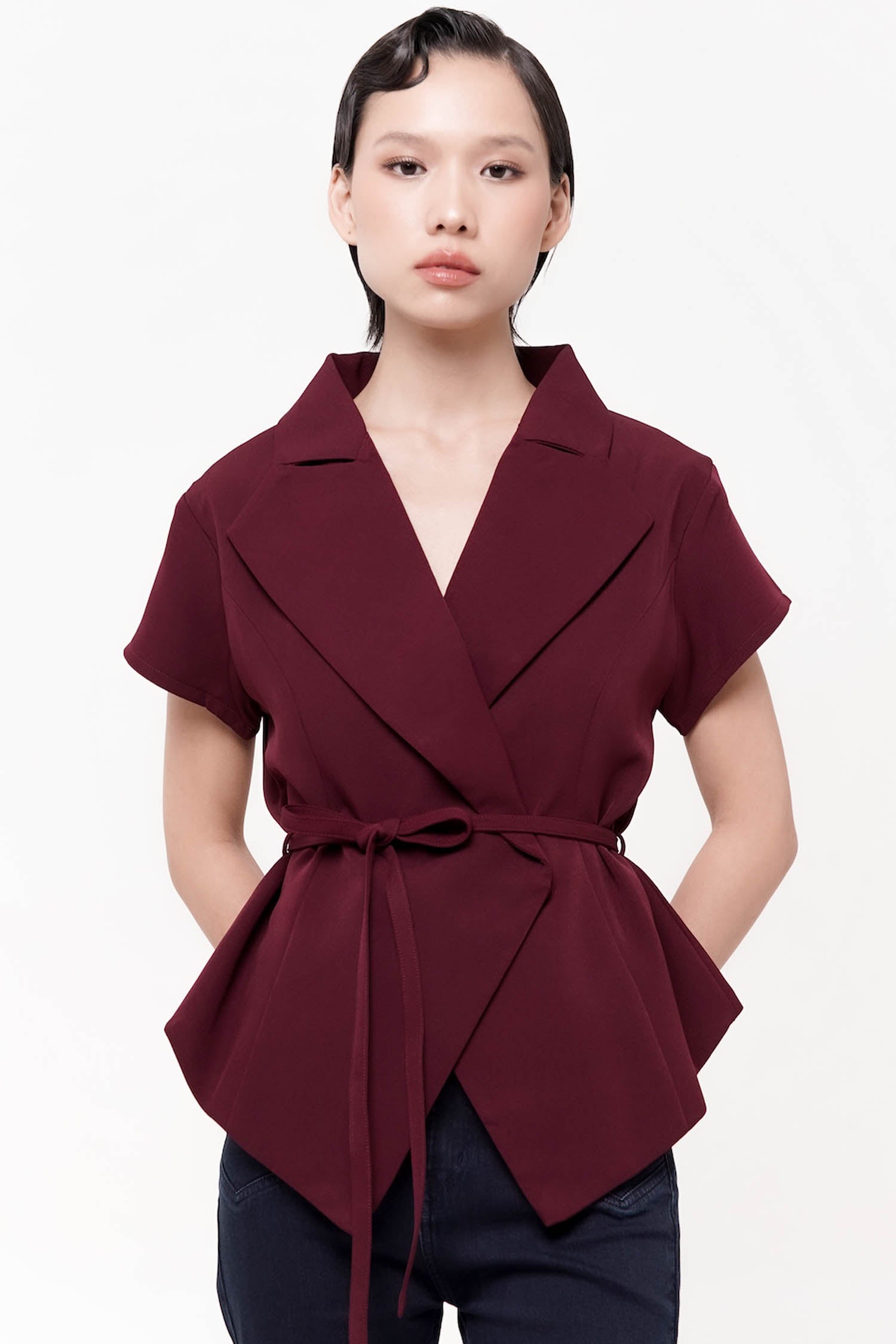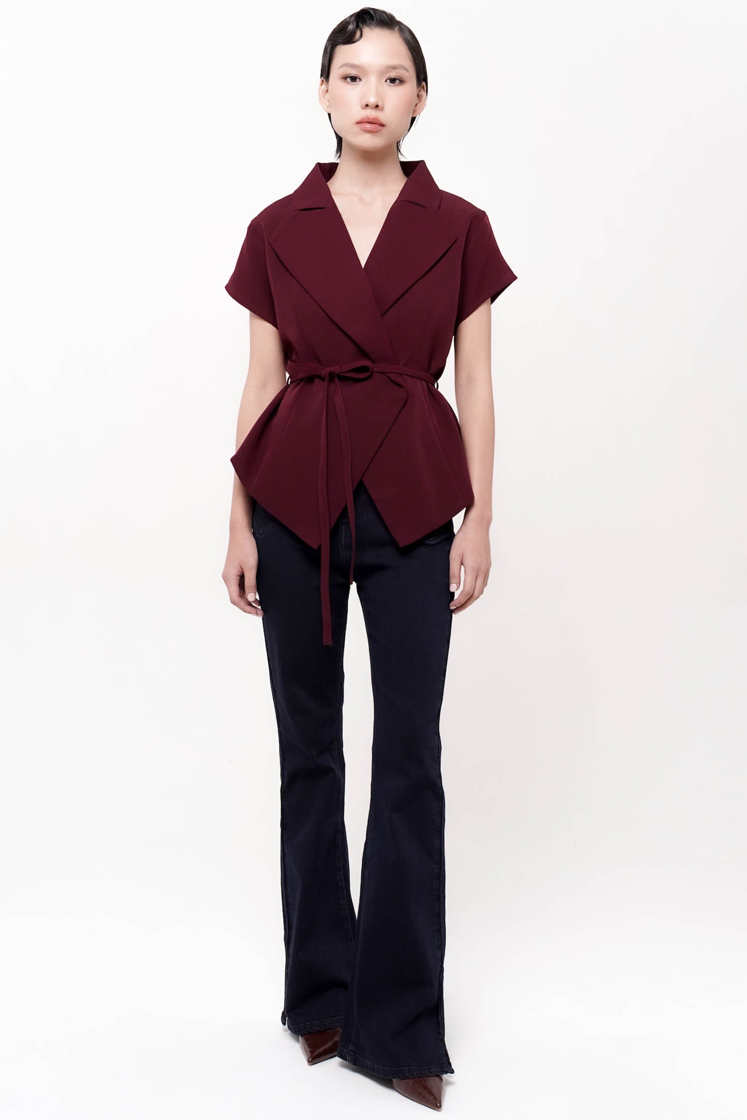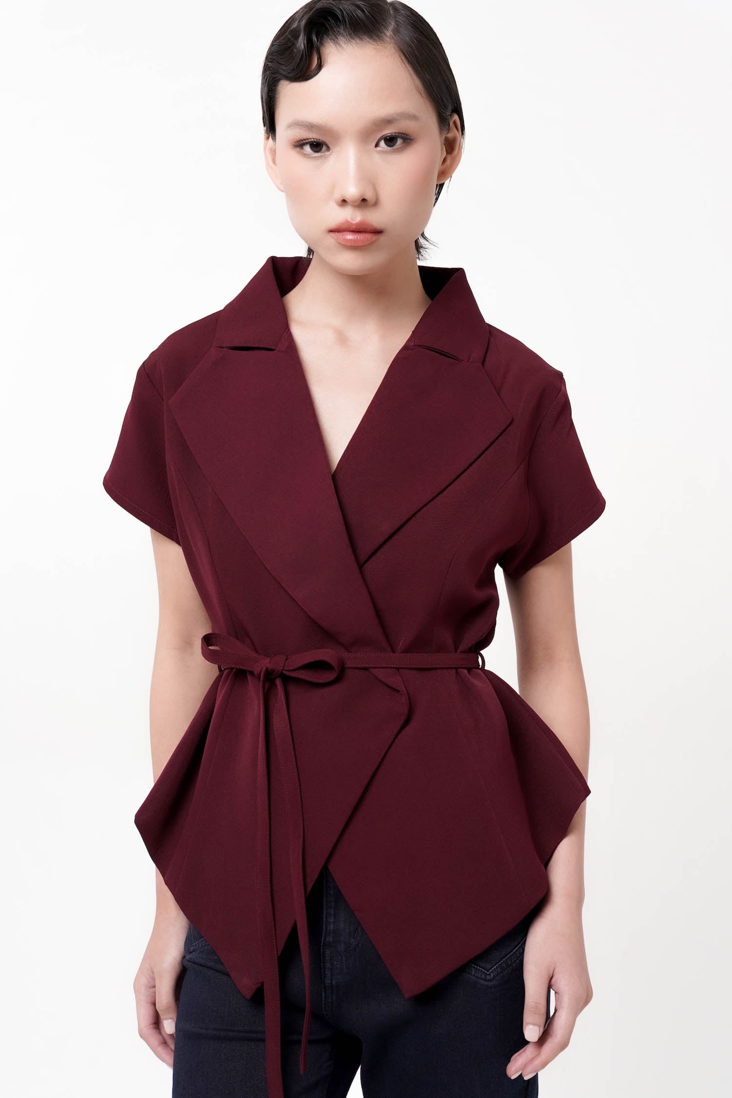 The Teegan Wrap Top redefines modern tailoring with its sharp lapel collar and sculpted wrap silhouet...