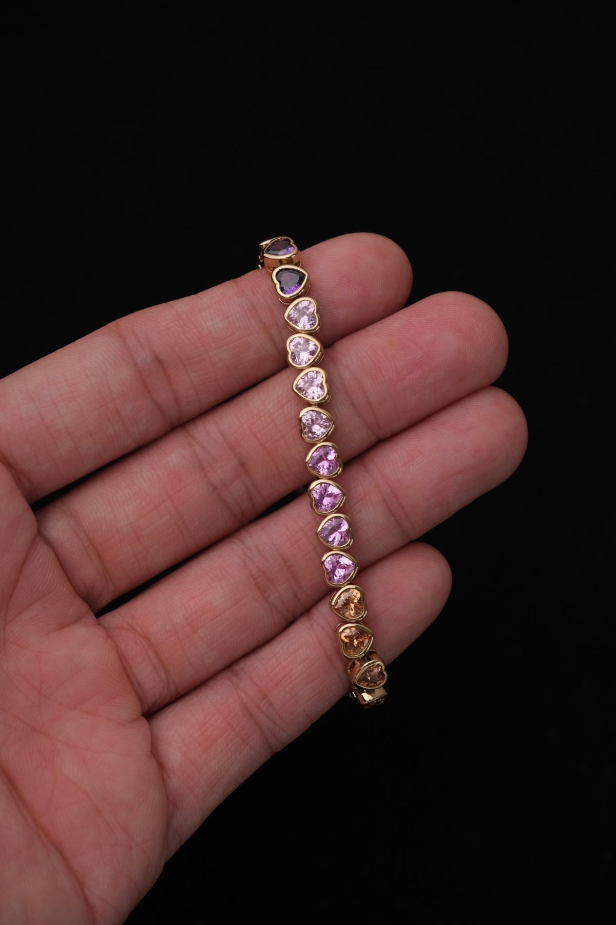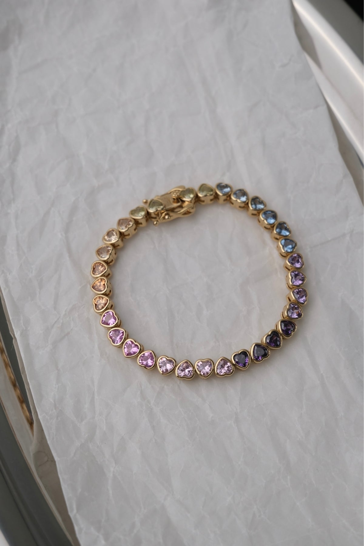 TENNIS HEART BRACELETMATERIALMade from brass with 0.5 micron champagne gold plating.
