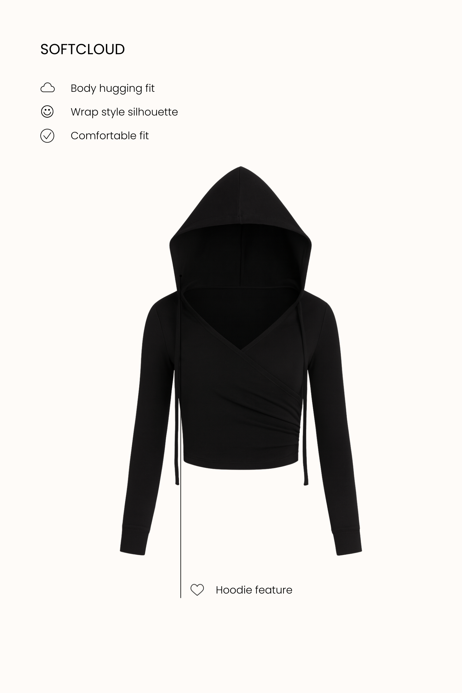 Effortless, sleek, and made to move. Terra Wrap Jacket features a wrap-style silhouette that slips on easily — no ties, no fuss — giving the look of a wrap top with the comfort of your favorite pullover.