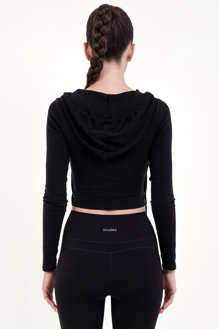 Made with a soft, stretchy knit that hugs the body just right, this piece flatters your shape while keeping you comfortable from studio to street. Designed with a built-in hoodie and adjustable drawstrings, it brings an easy, off-duty edge to your activewear lineup.