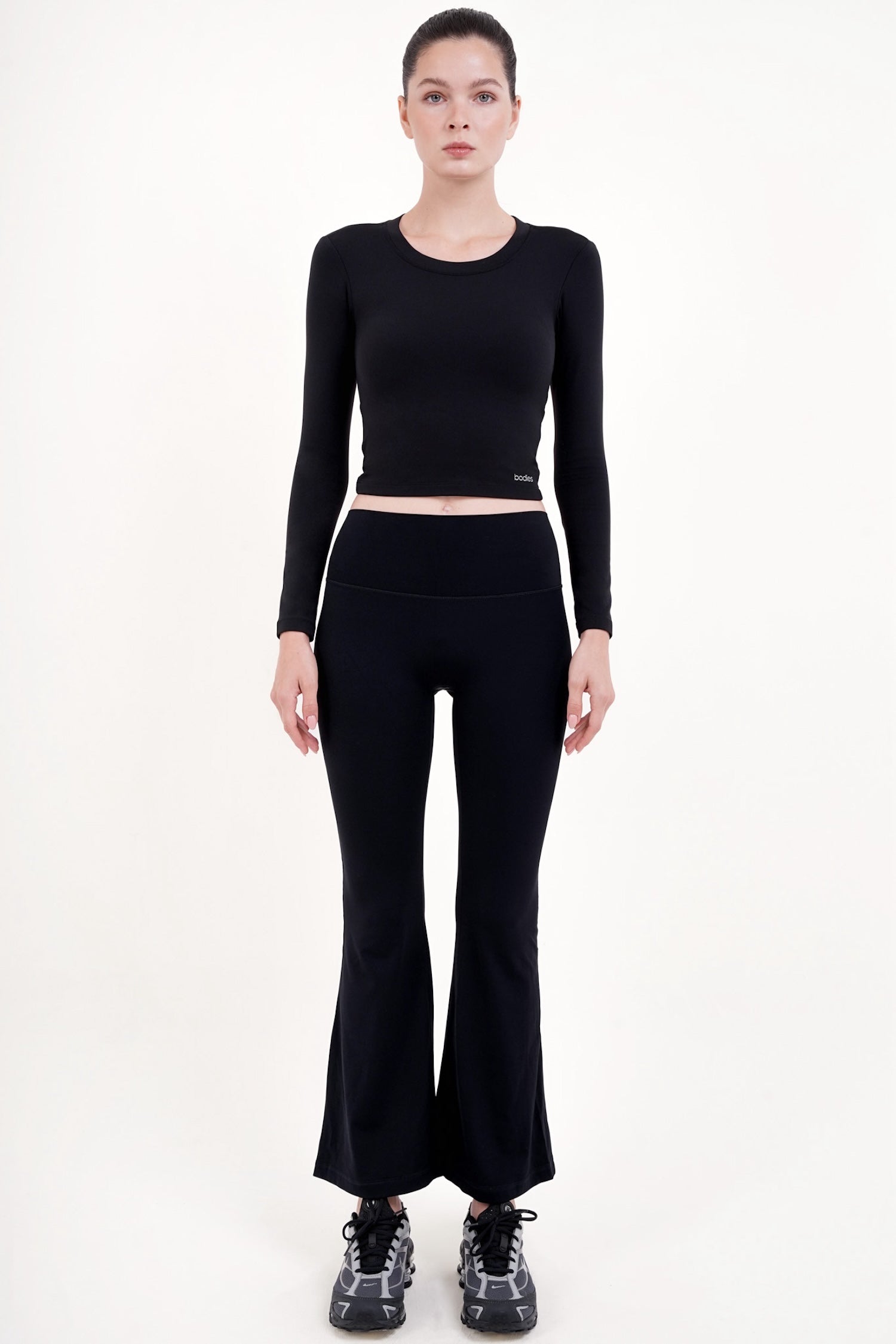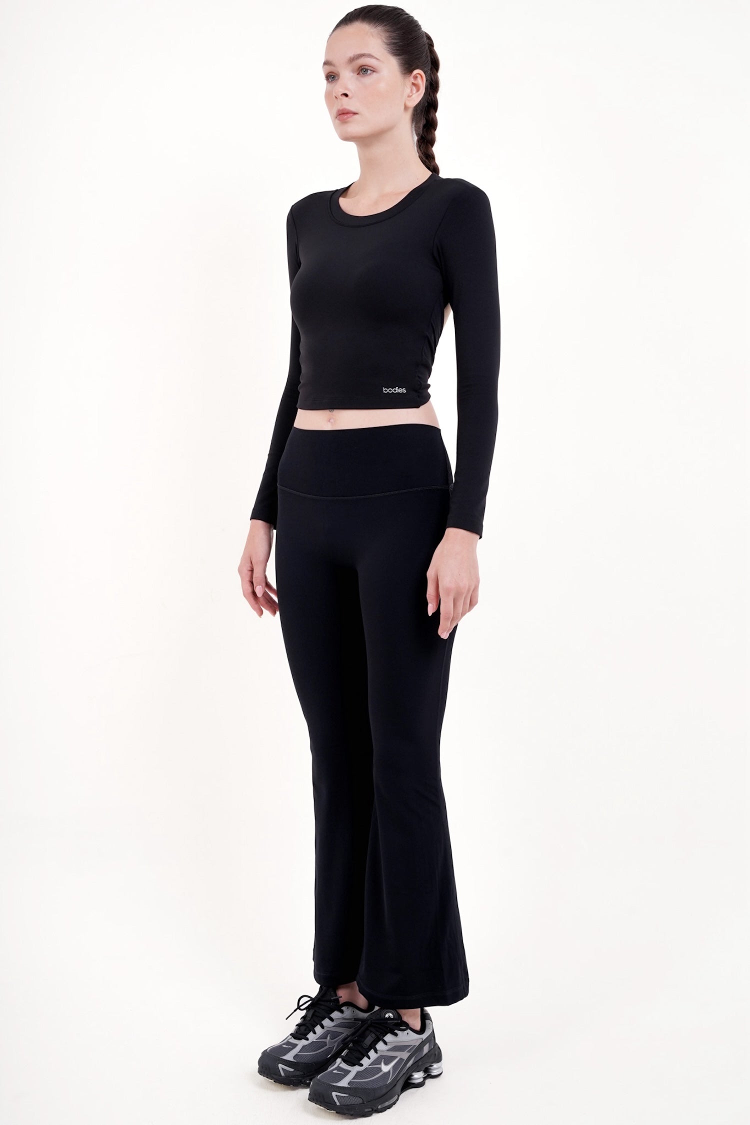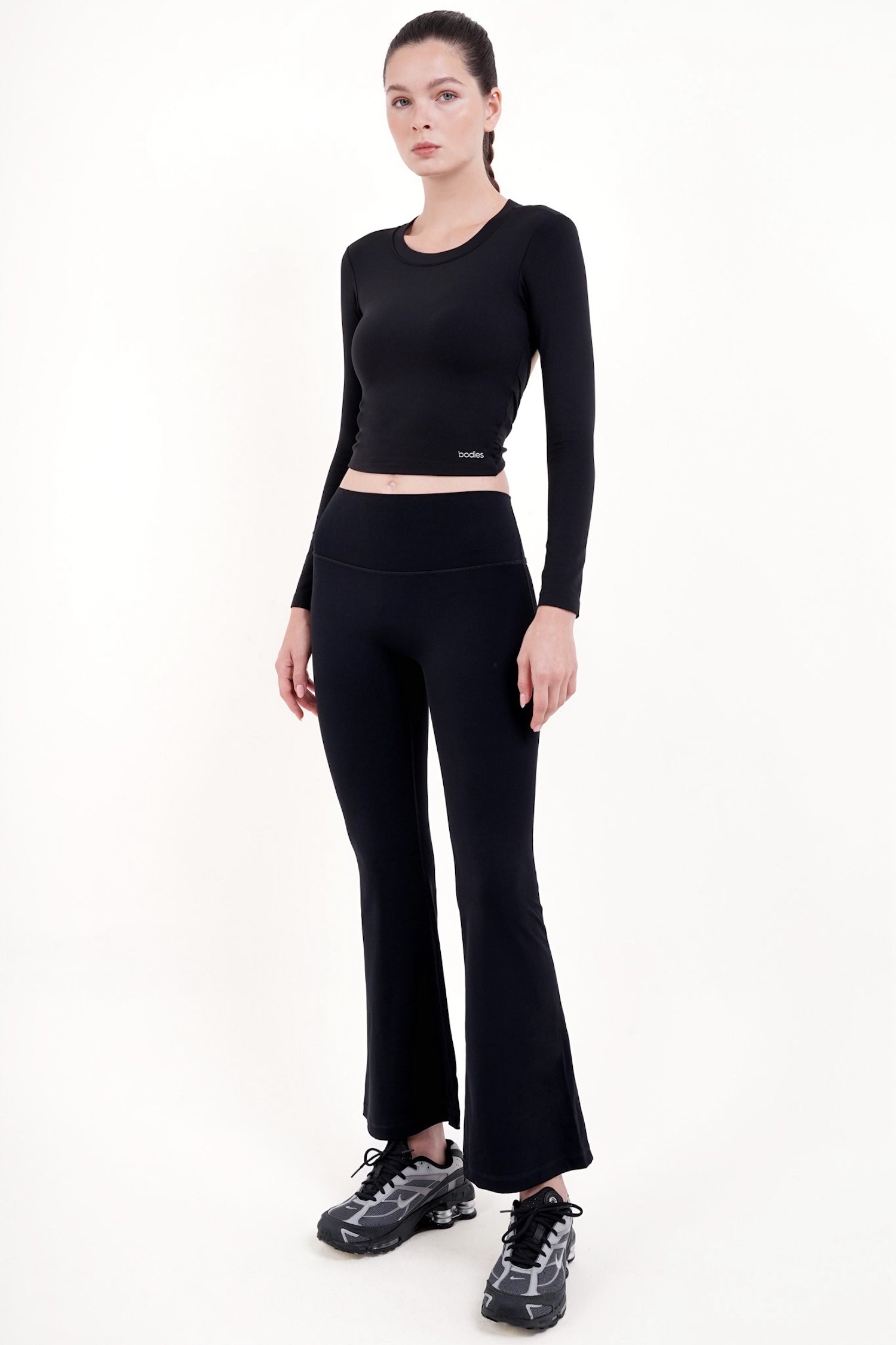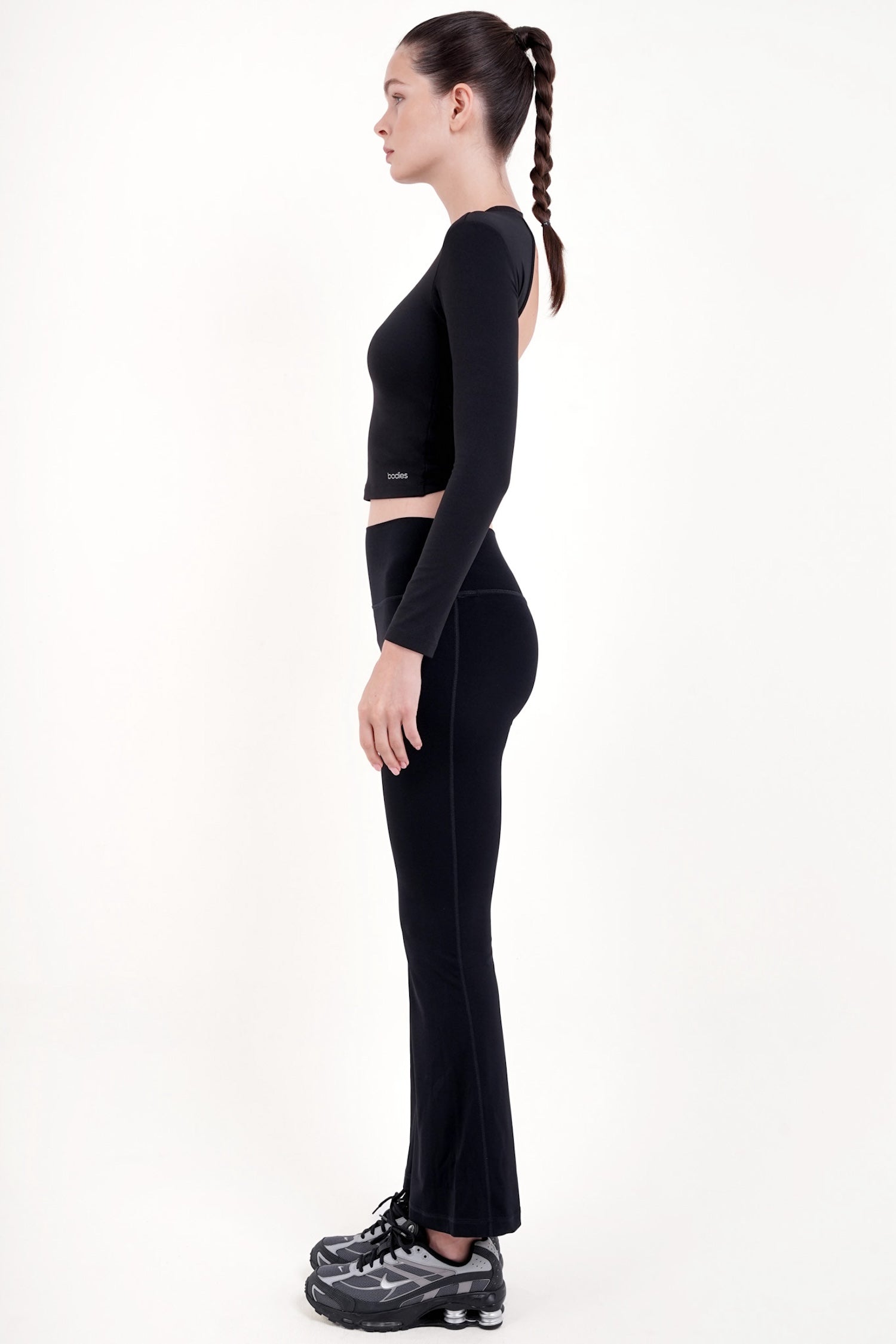 Elevate your activewear collection with the Twist-Back Long Sleeve Bra Top in Black, a chic and functional addition designed for your exercise routine. This versatile bra top is perfect for workouts, lounging, or a casual day out.