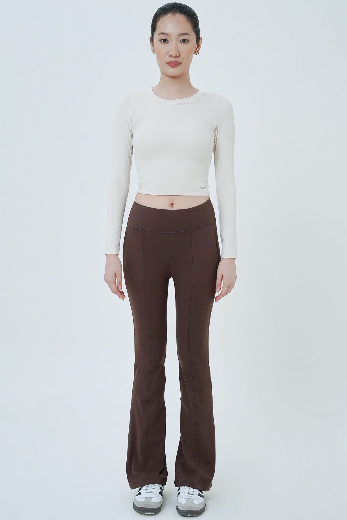 Elevate your activewear collection with the Twist-Back Long Sleeve Bra Top in Eggshell, a chic and functional additi...