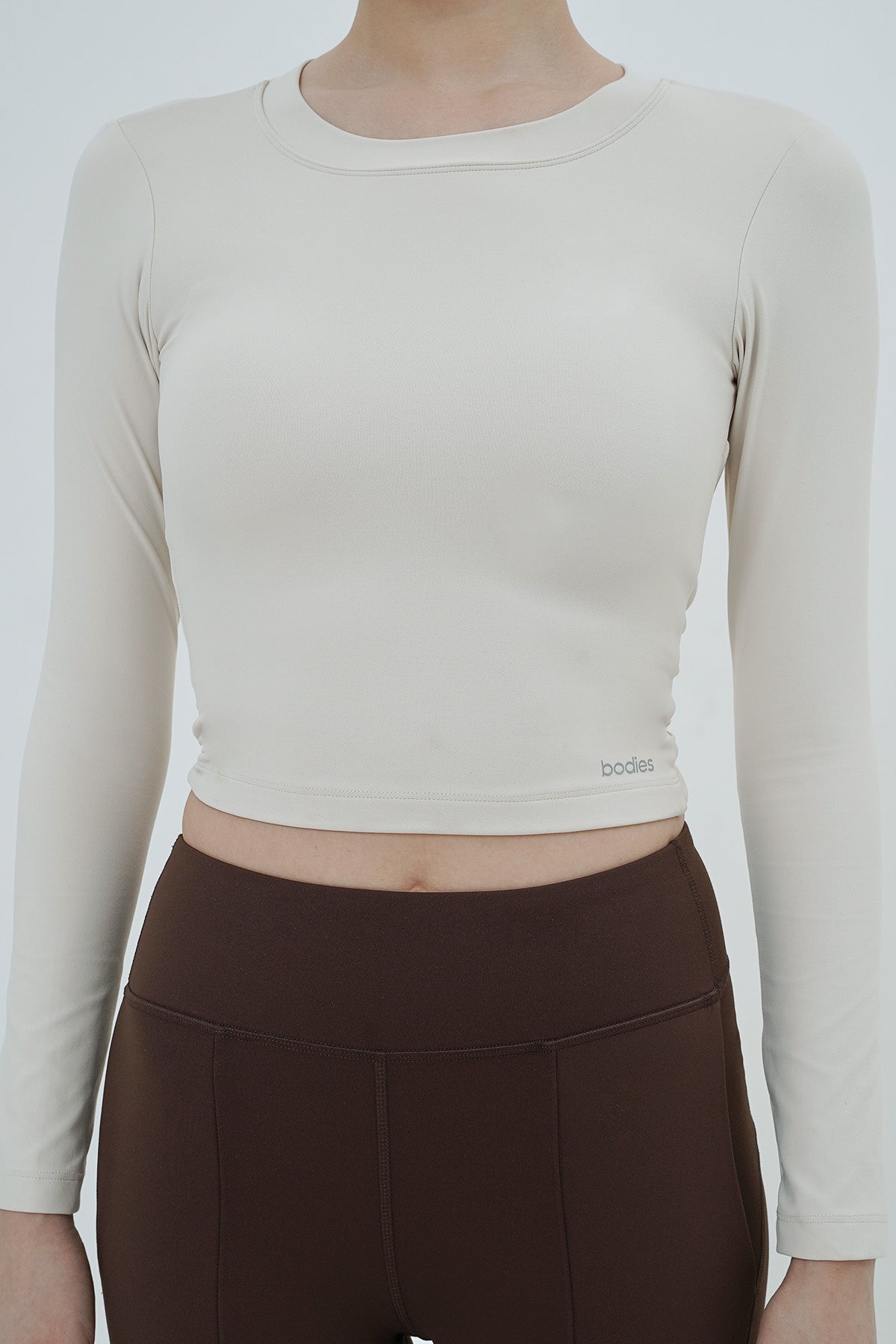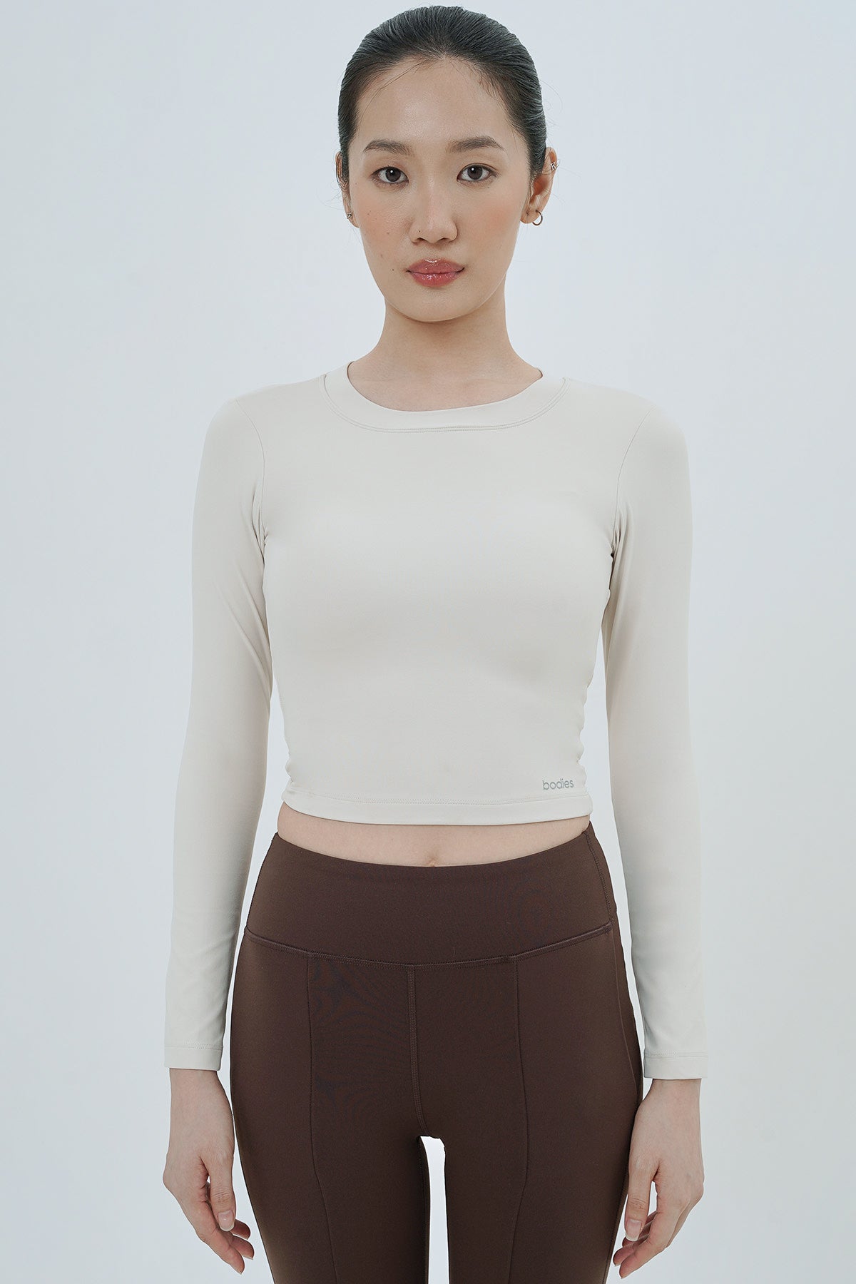 Twist-Back Long Sleeve Bra Top in Eggshell