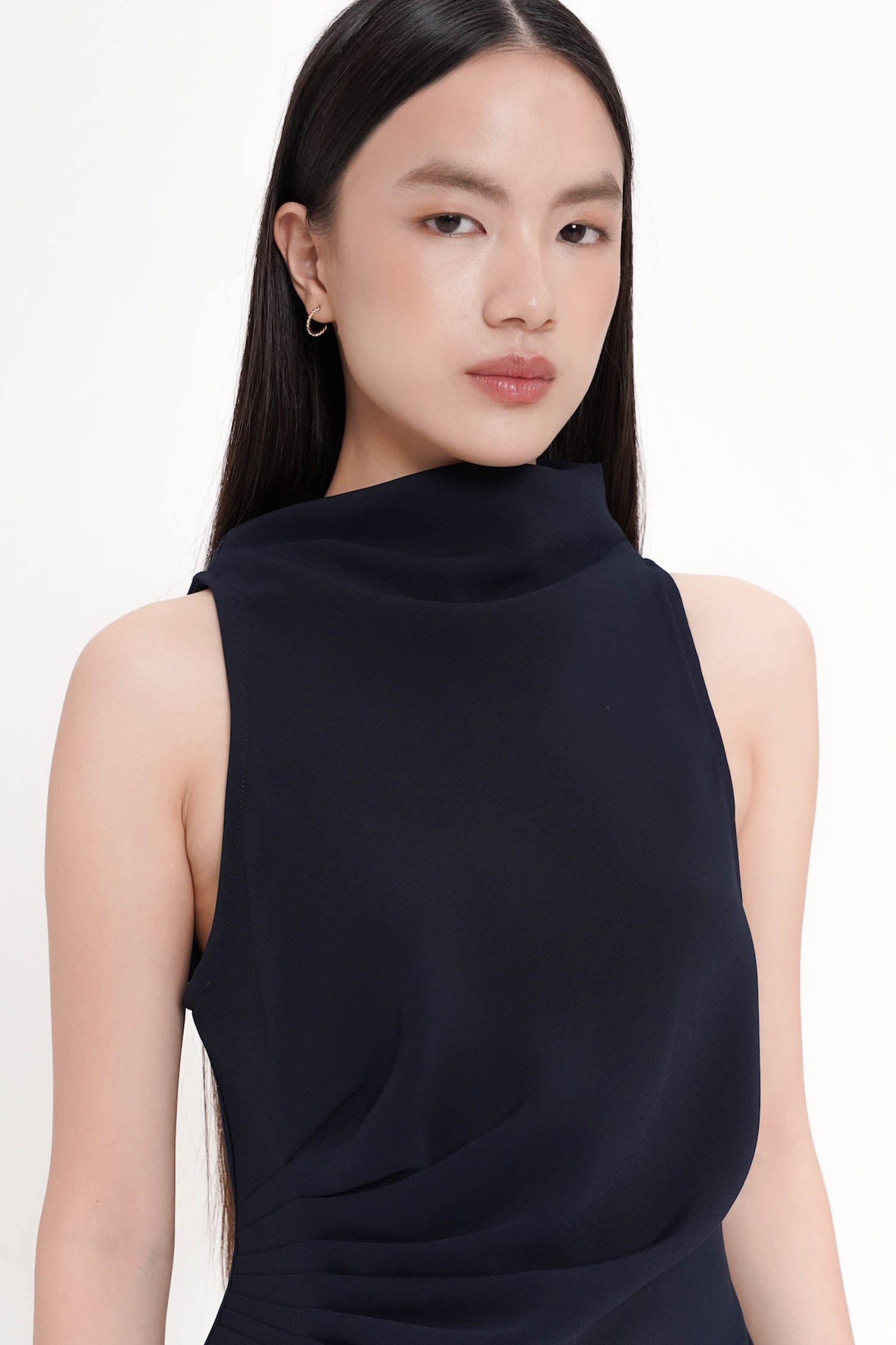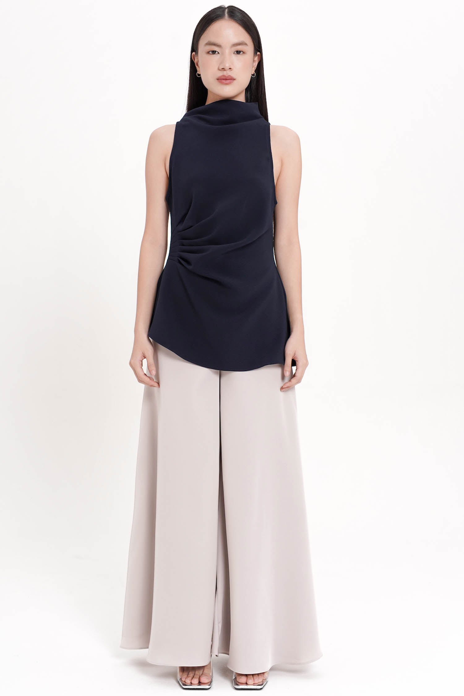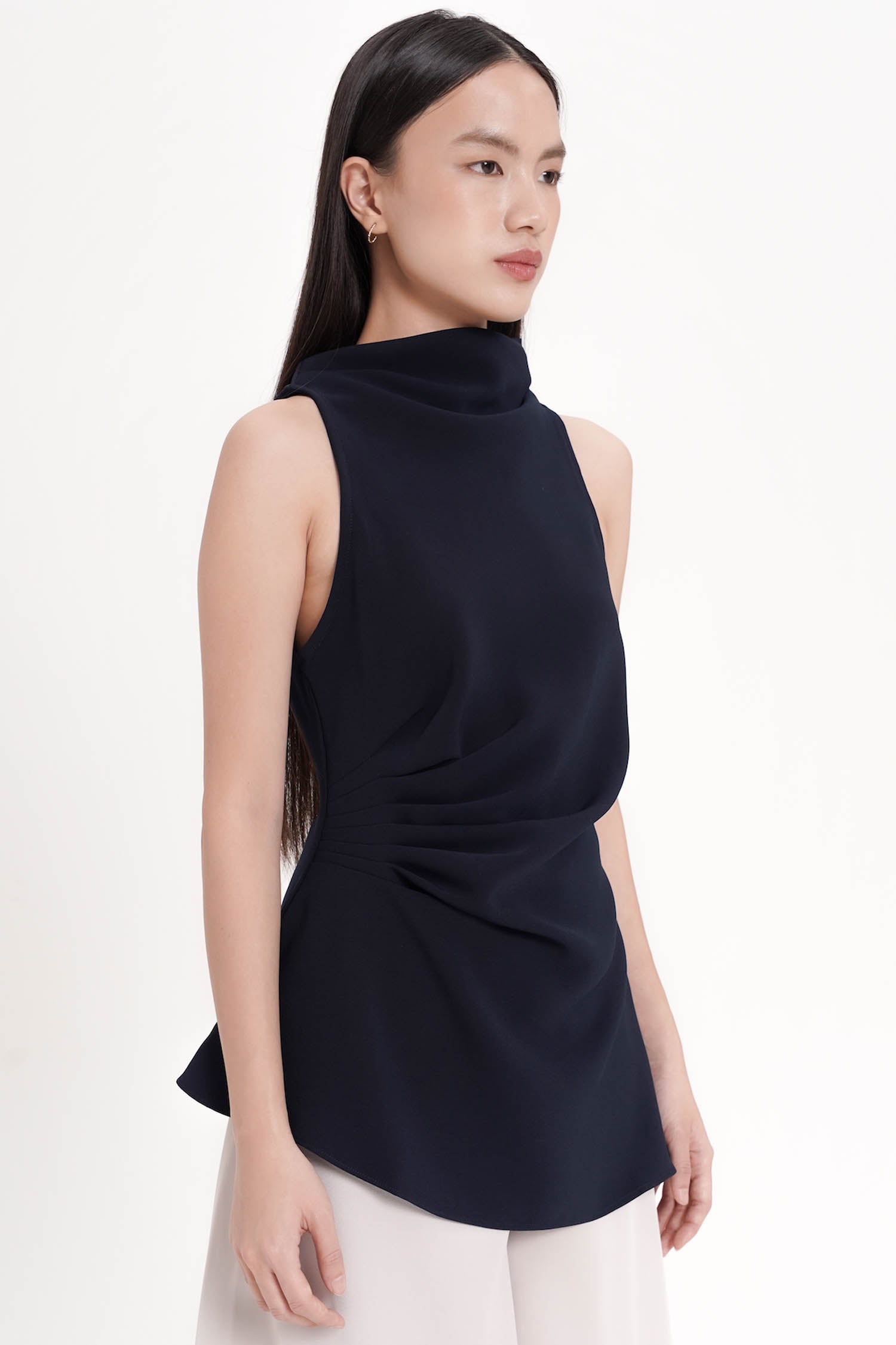 A seamless fusion of modernity and grace, the Vailla Cinched Top captivates with its sculptural d...