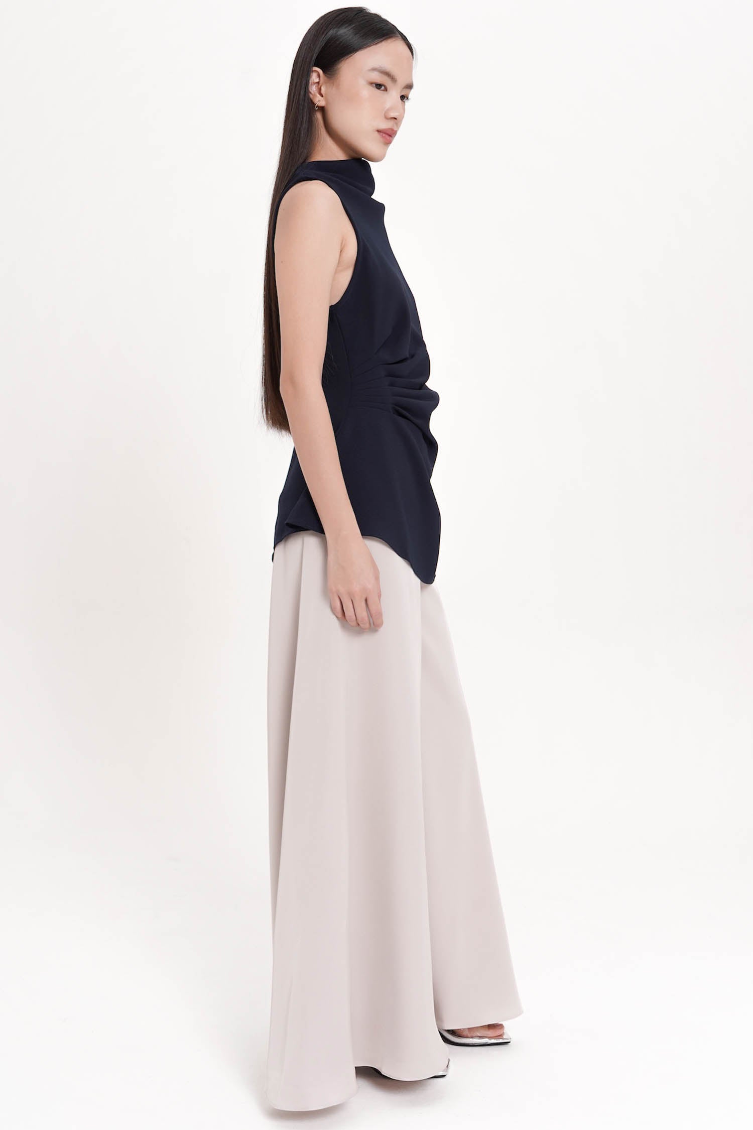 A seamless fusion of modernity and grace, the Vailla Cinched Top captivates with its sculptural draping and asymmetrical hem. Designed in luxurious semi-wool fabric, it features artful side ruching that accentuates the waist, creating a flattering, form-enhancing effect. Available in Grey and Ash Brown, this timeless piece adds an air of understated sophistication to any ensemble.