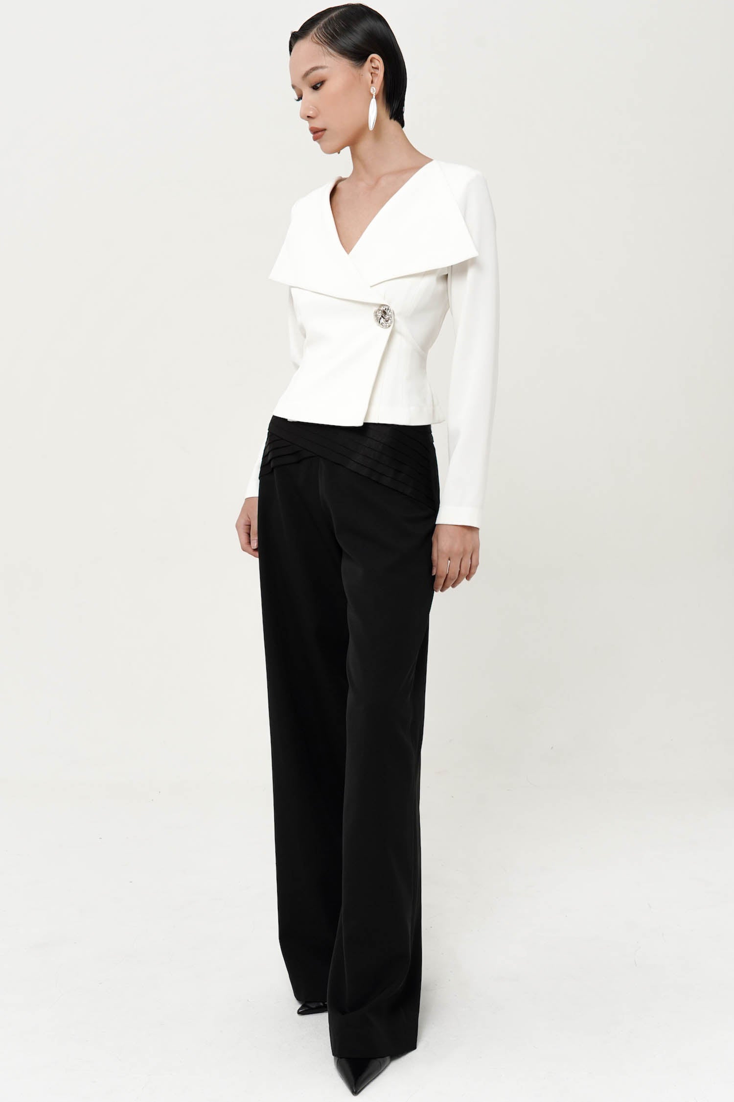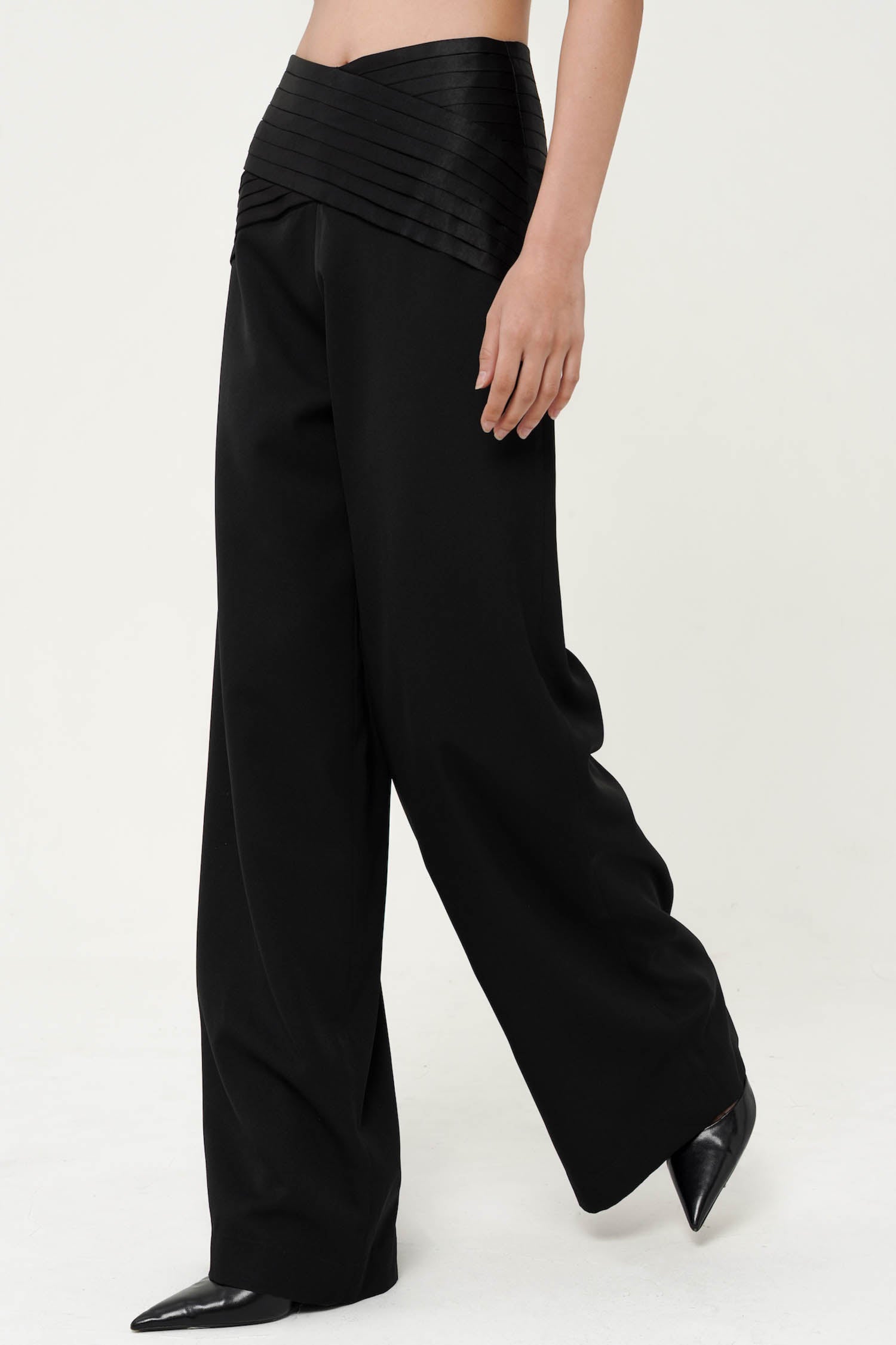 VENDOME PANTS Cross Cummerband Wide Leg Trousers in Black. There is Might Be a Slight Differences in Color Due to Lig...